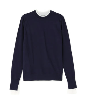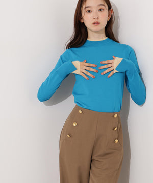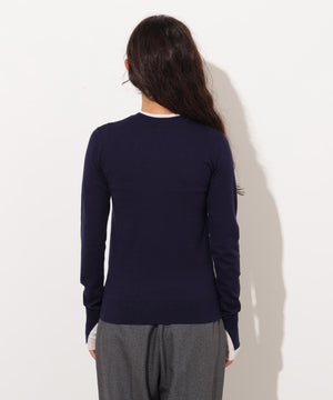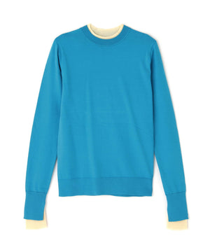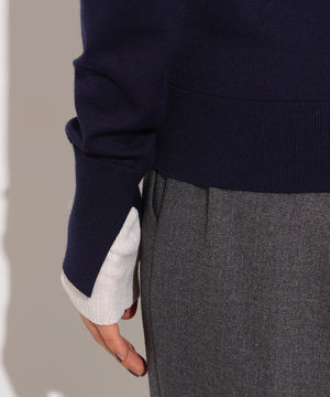 トレンドのレイヤードディテールを取り入れたニット。襟と袖口から見えるバイカラーの組み合わせがアクセントになります。袖口はスリット入りでバイカラーが映えるデザイン。ベーシックなサイズ感なので、1枚着はもちろん、ジャンスカのインナーとしても着ていただけます。