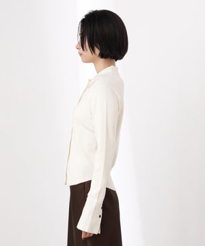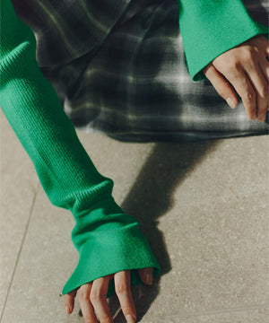 滑らかで伸縮性のあるハイゲージリブ素材を使用。程よいフィット感と上品な表面感が特徴です。