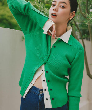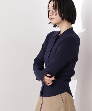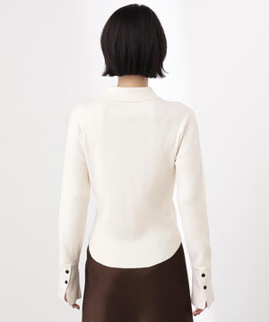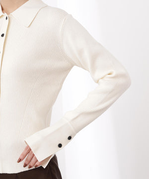 【岸本セシルさん着用】ポロ襟フレアカフスニット