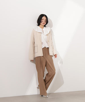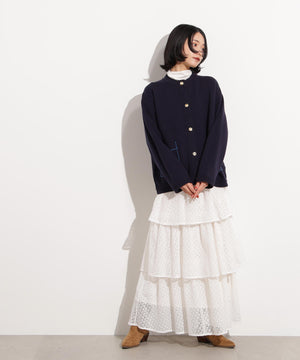 少しあたたかみを感じる糸をジャガード編みで仕立てたニットジャケットです。