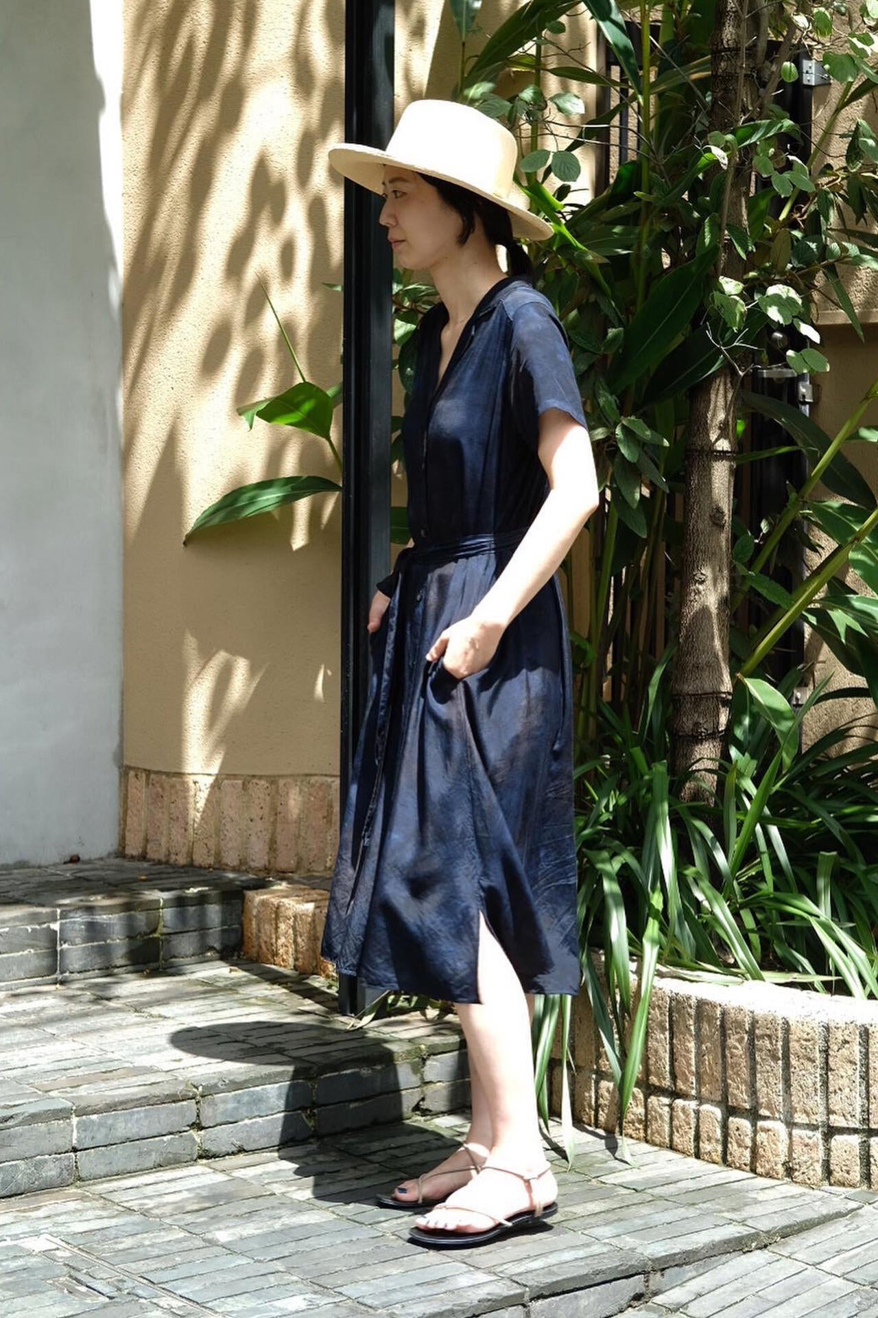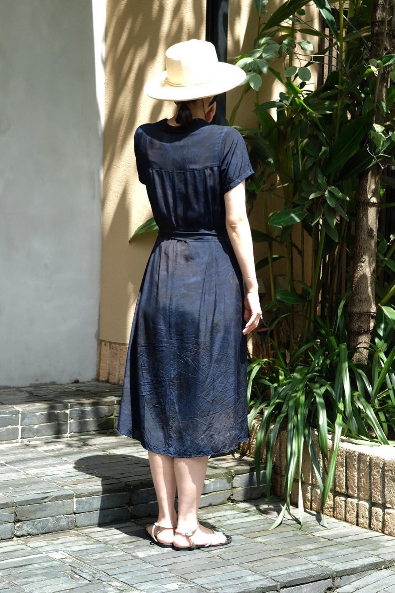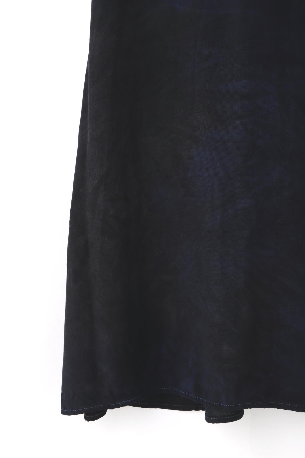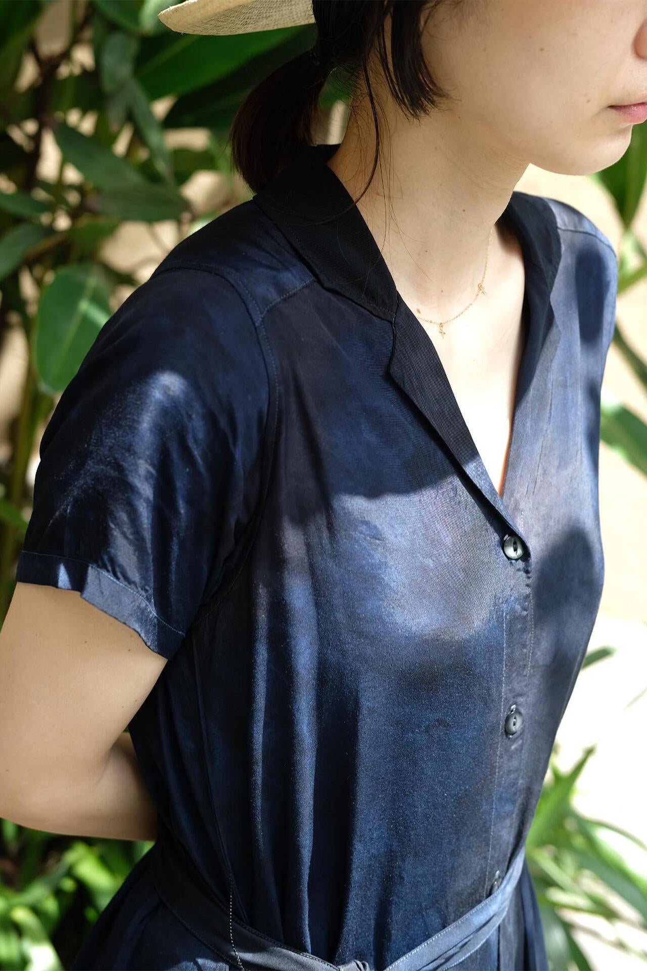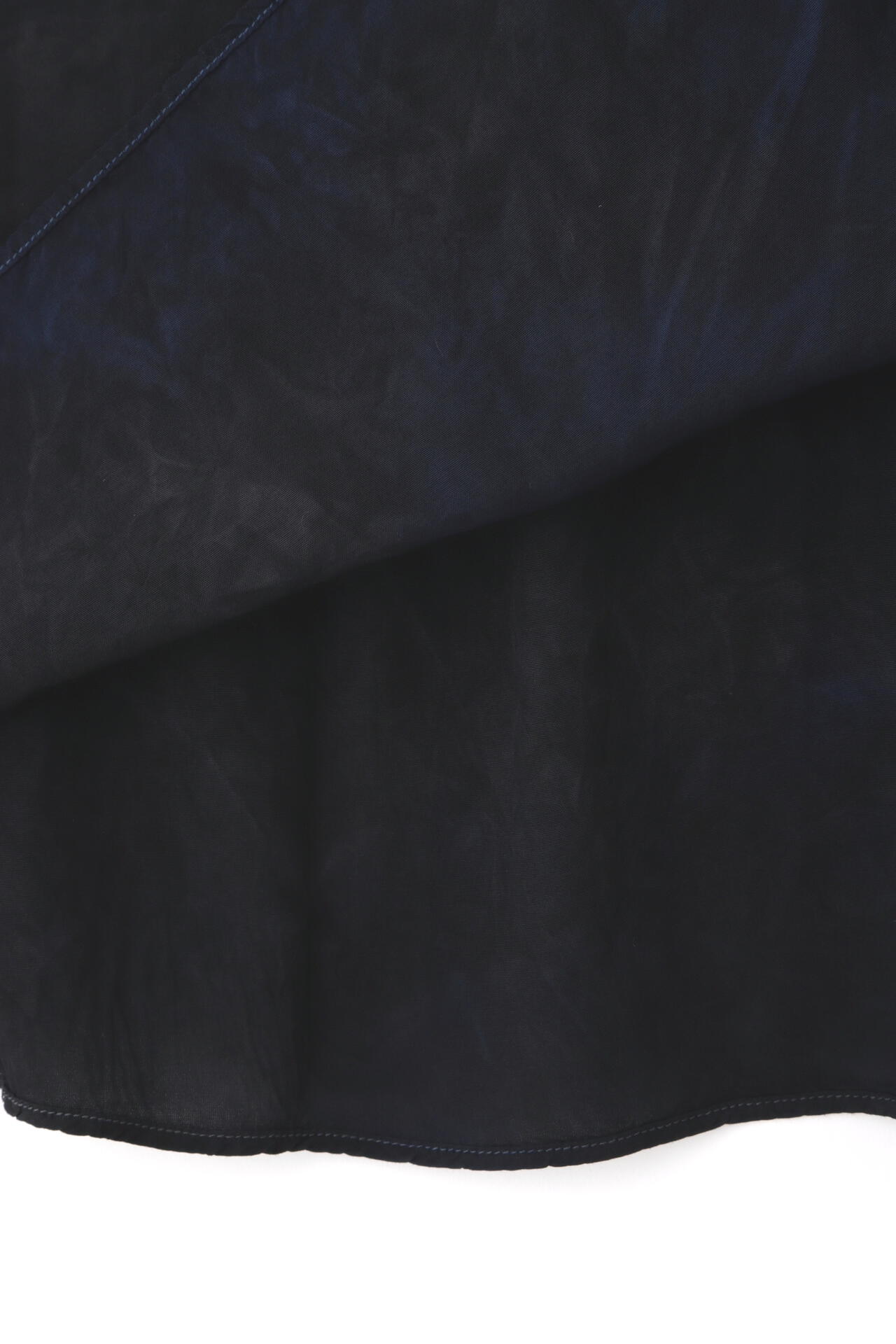 注染は、布を芯まで染めるため裏表なく鮮やかに染まり、色褪せしにくいことが特徴。本来はハッキリとした柄を描くのに適した技法ながら、「CHUSEN DYE」では染色の際にあえて生地にシワを寄せ、そこに染料を注ぐことで独特の美しい「まだら模様」を表現。