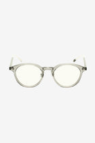 紫外線によってレンズカラーが変化する調光レンズを使用している為、室内では薄いレンズカラーのメガネとして、紫外線のあたる屋外では濃いサングラスとしてご使用いただけます。