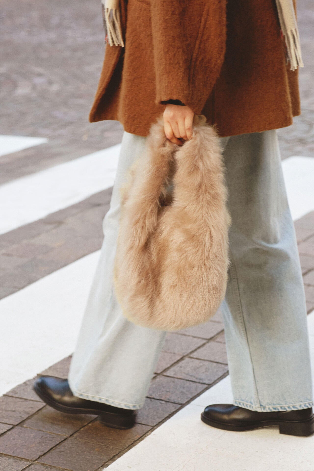 ボリュームのある毛並みが特徴のイタリア製フォクシーラムスキンで作られた、とてもキュートなハンドバッグ。必要なものを持ち歩くのに最適なサイズです。