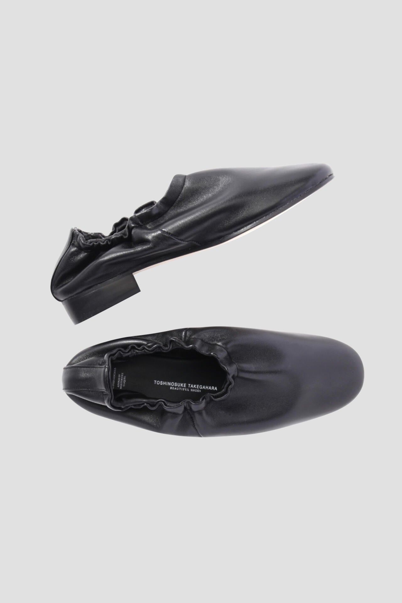 バレエシューズをモチーフに、日常的に履ける靴を目指し制作されたアイテム。ヒール高を加えた上品な新バージョンです。