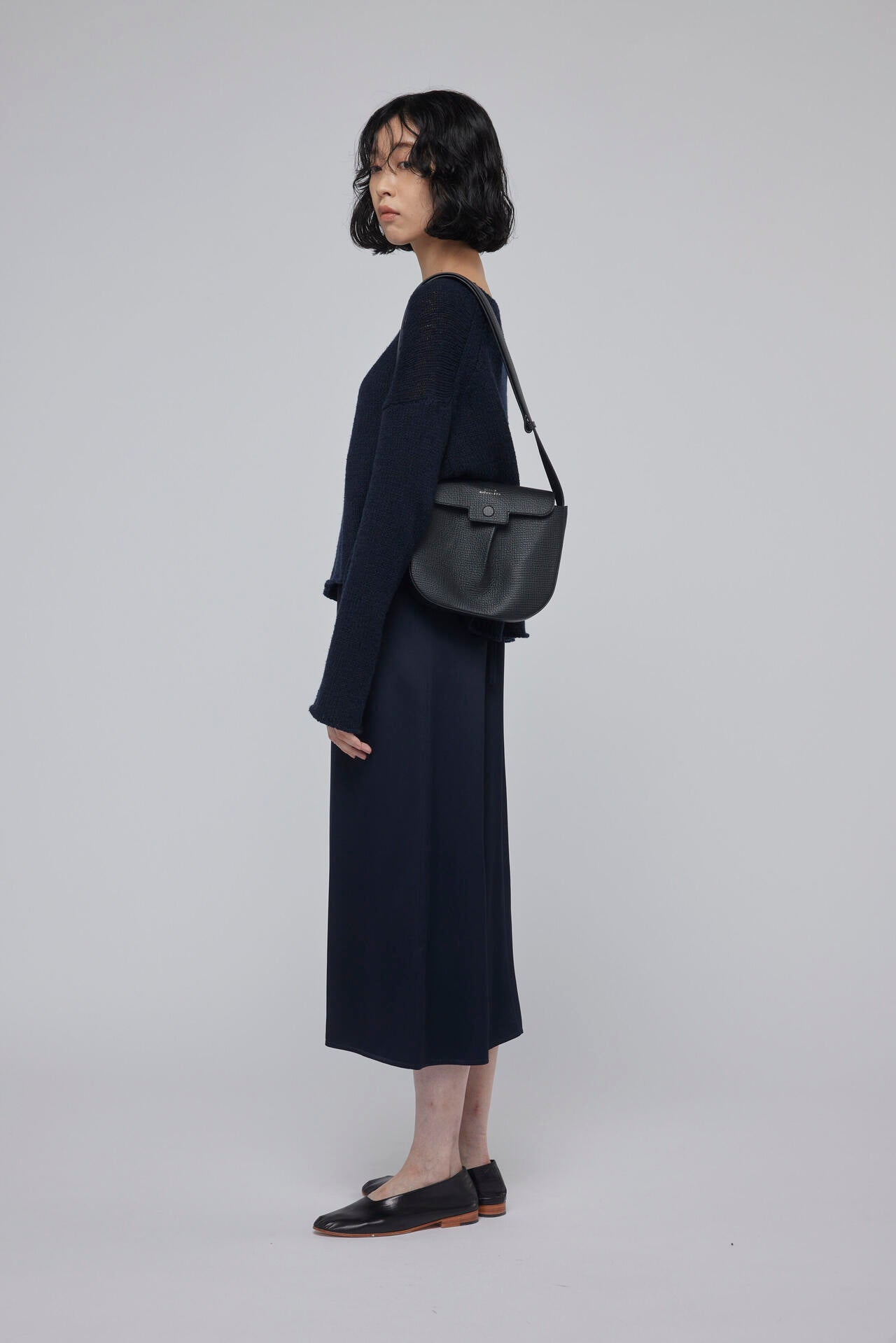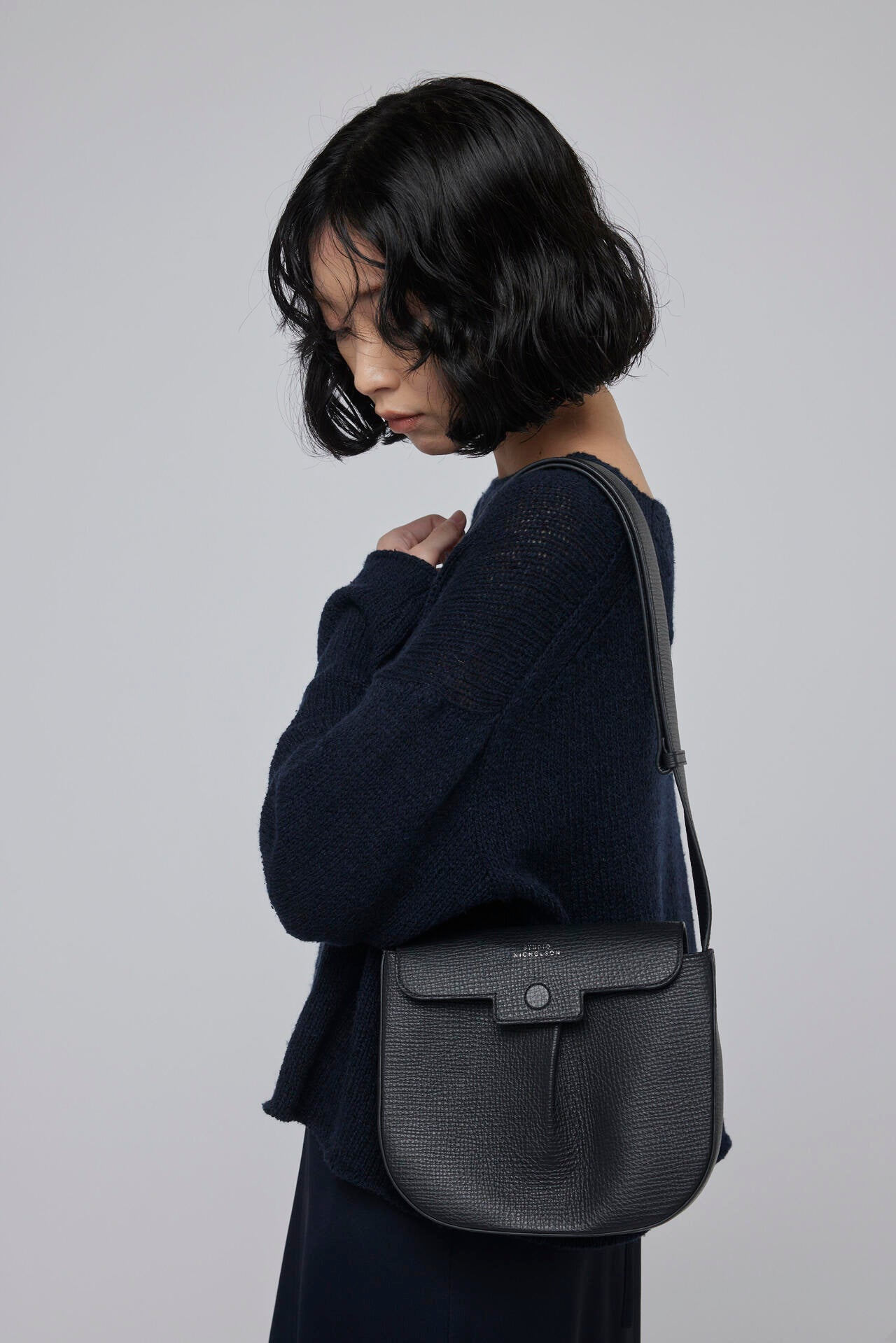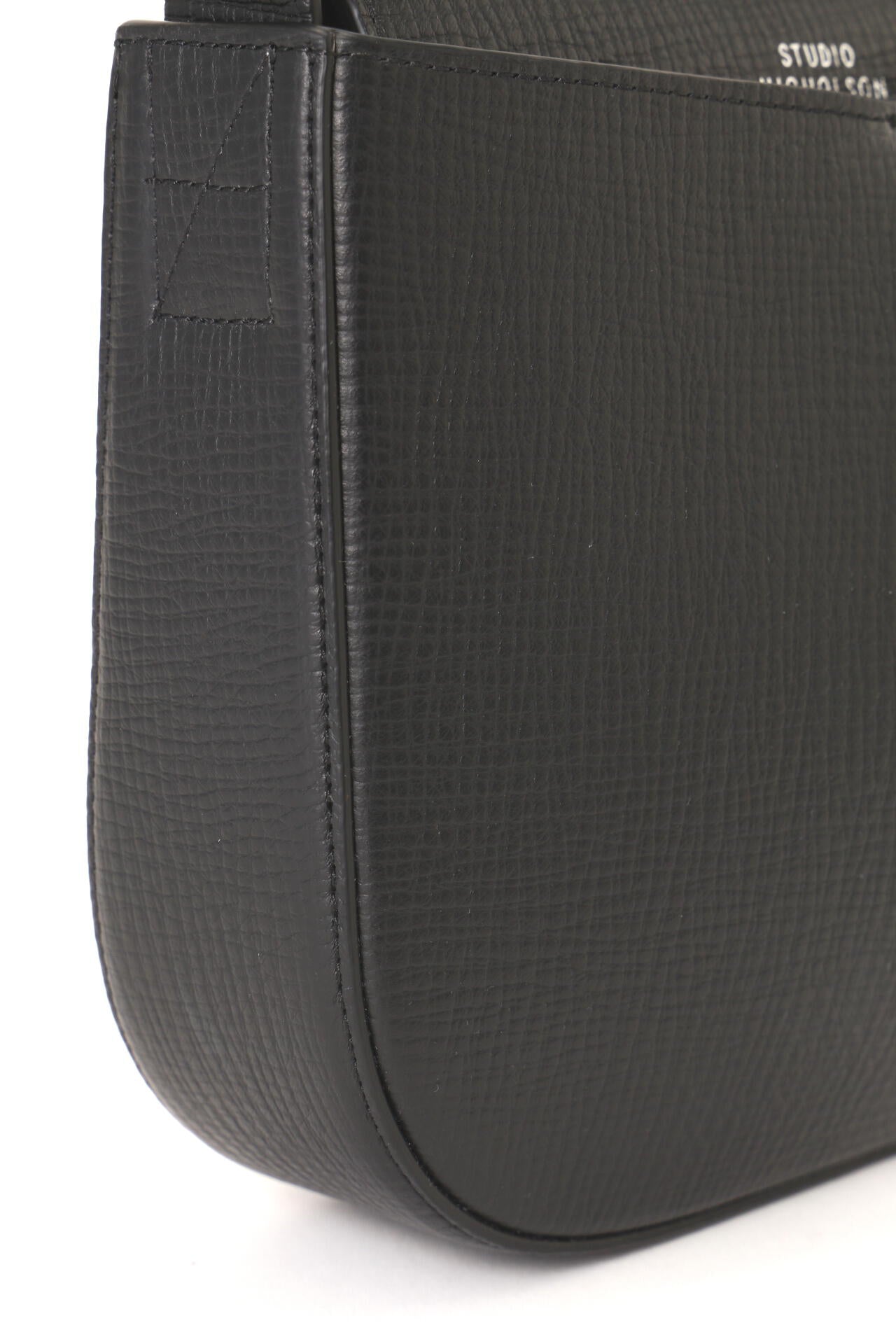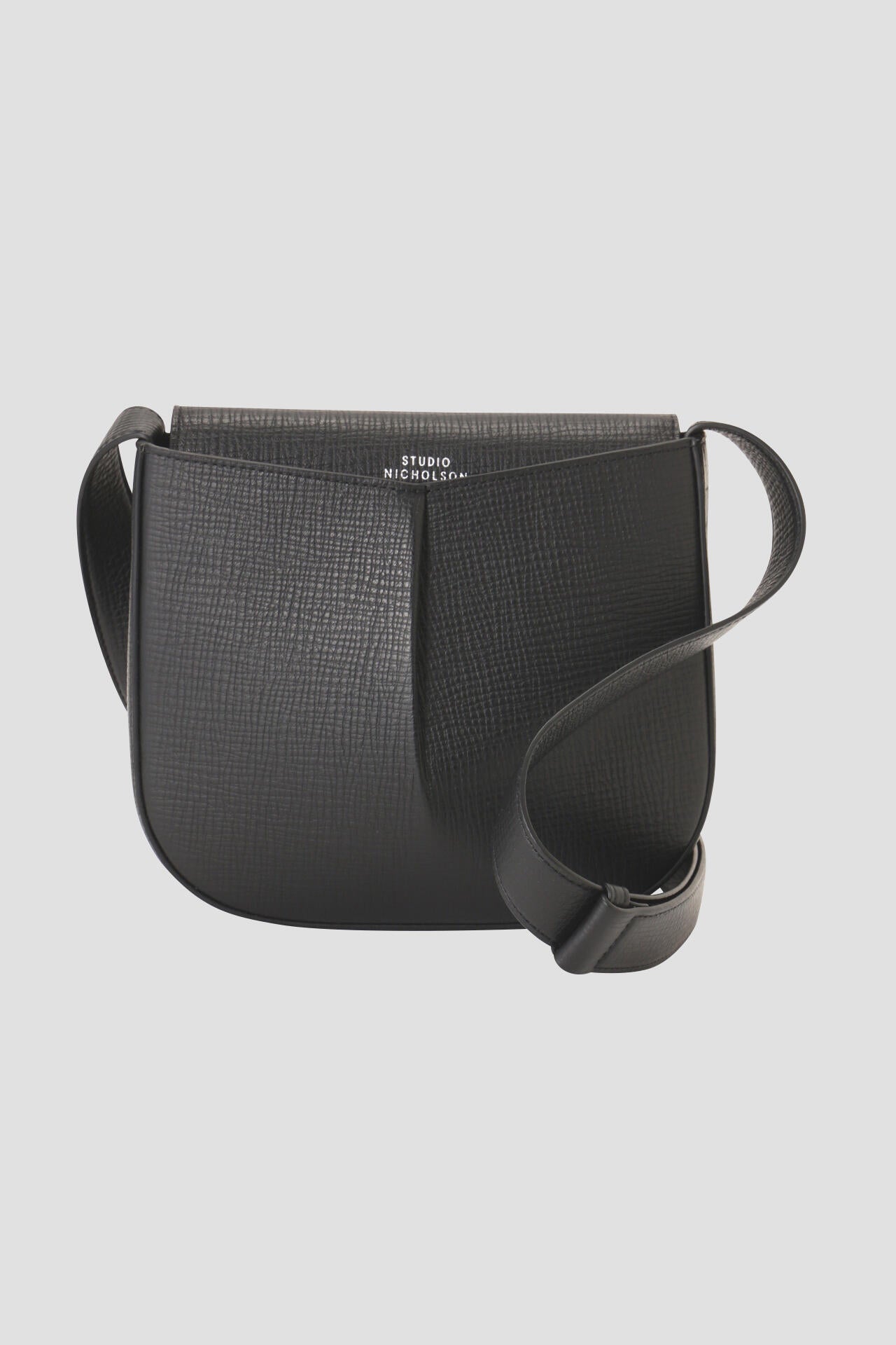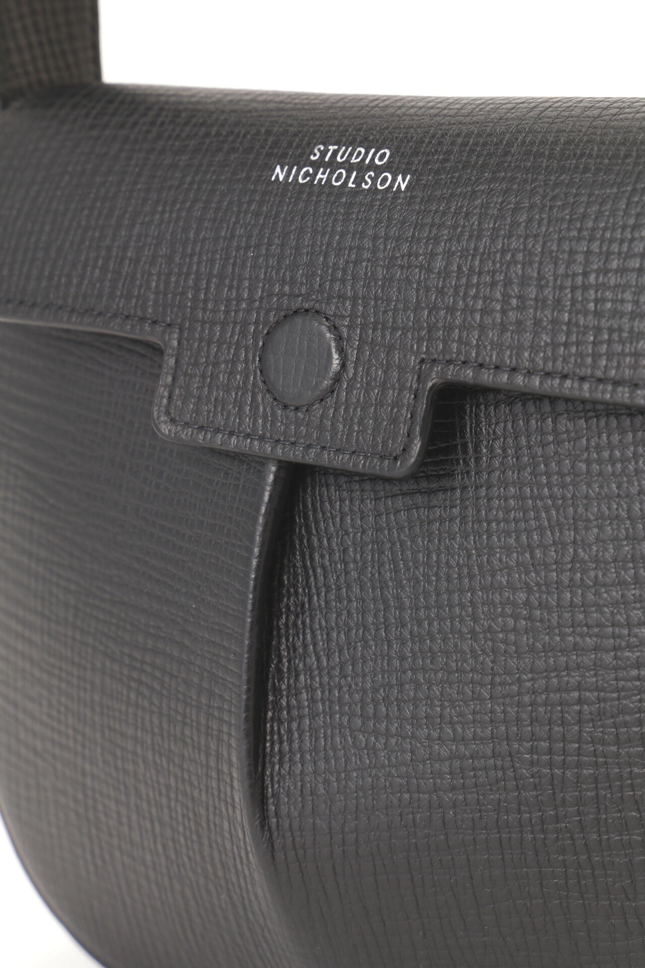 STUDIO NICHOLSONのアイコンでもあるプリーツパンツのディテールから着想を受け、小さなクロスボディバックの両側にシングルプリーツをあしらったユニークなデザイン。