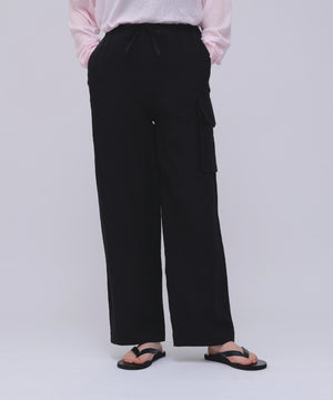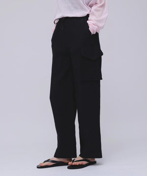サイドがシームレス仕立てになったリネン素材のパンツ。