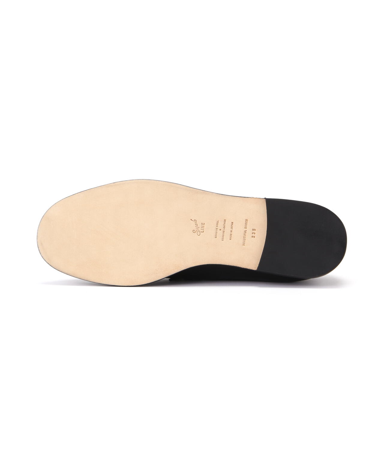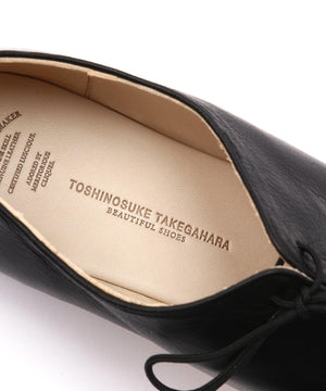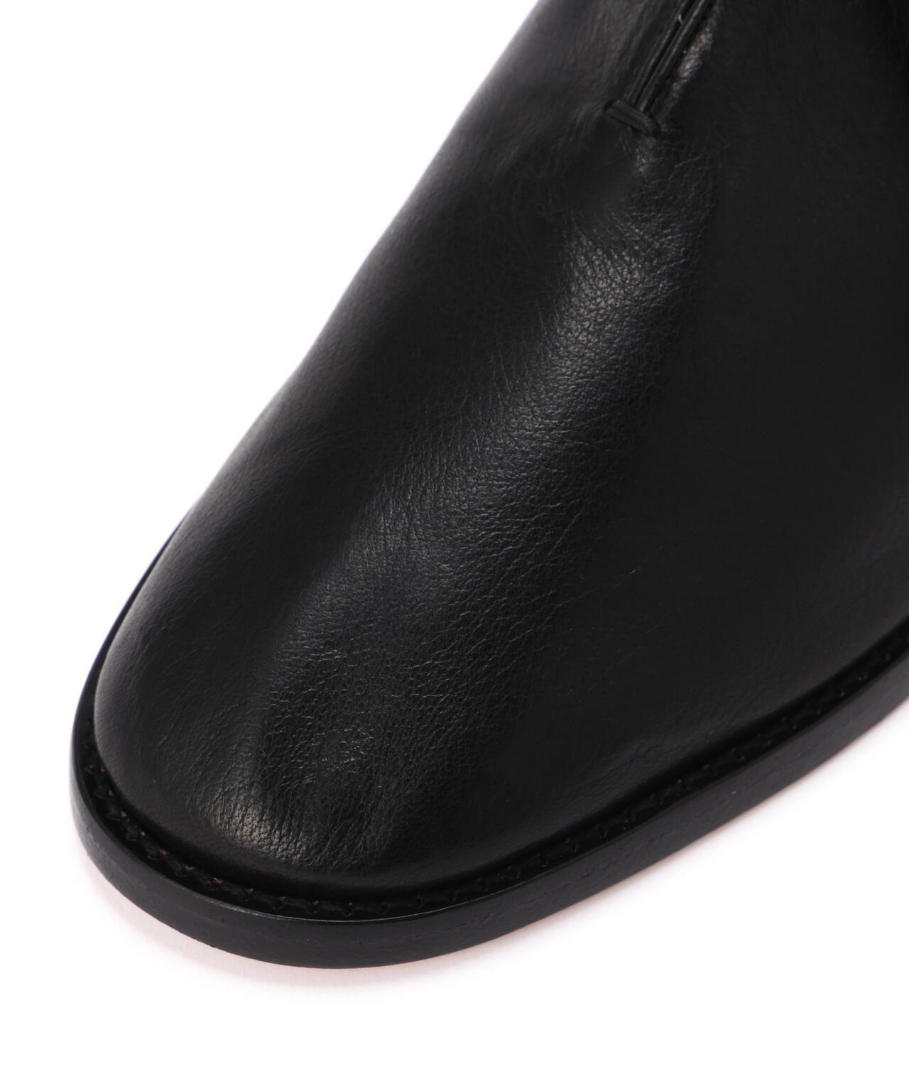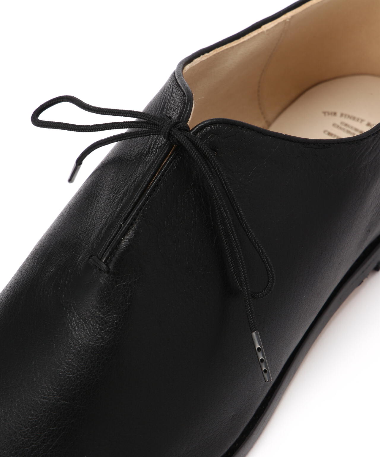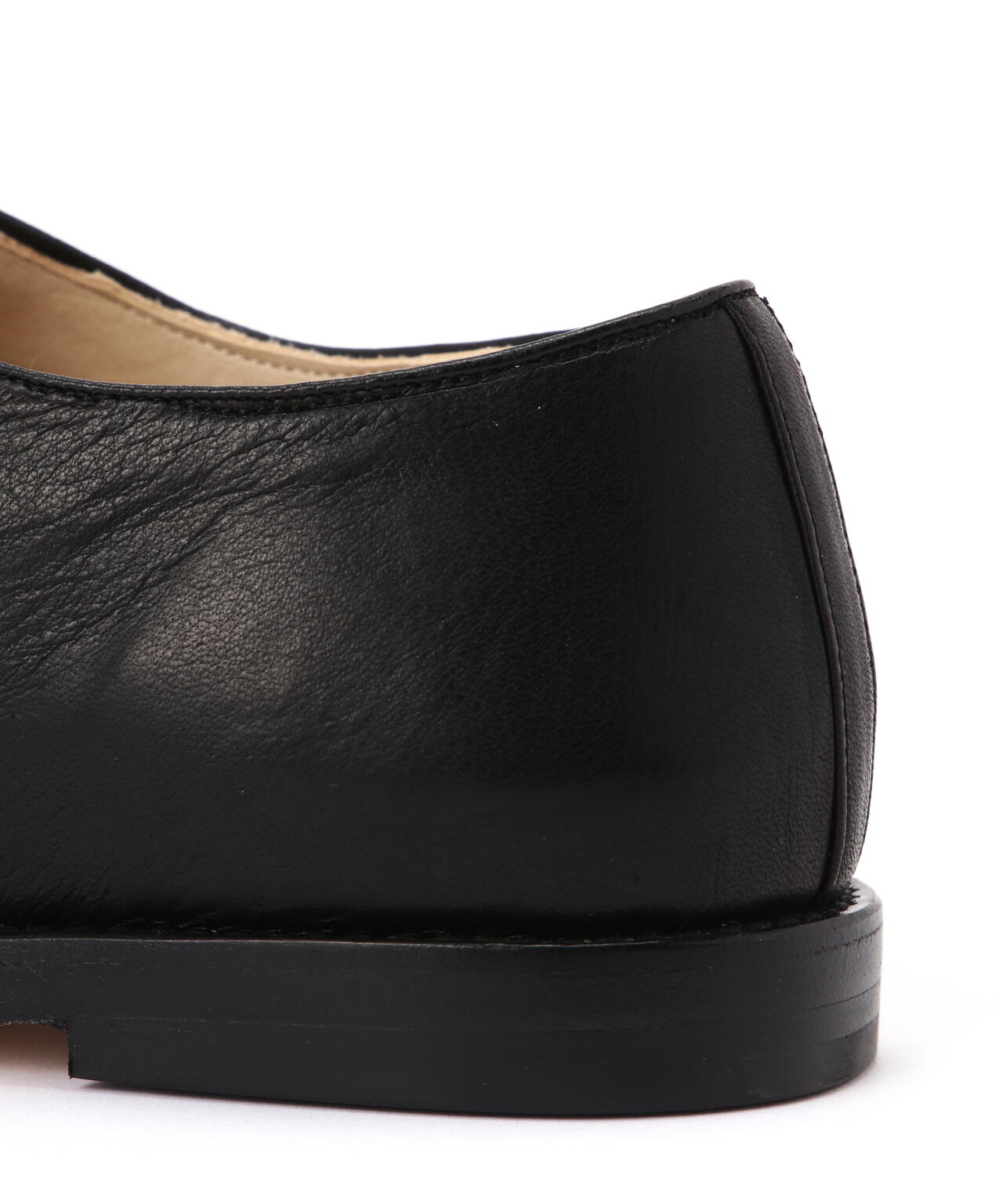 シンプルなアッパーのデザインにきめ細かなステアハイドを用いた足馴染みの良い一足です。芯材などをあえて省くことで、素材の持ち味を引き出しています。ソールにはしなやかなイタリアンレザーを使用していますので返りの良さも特徴のひとつです。