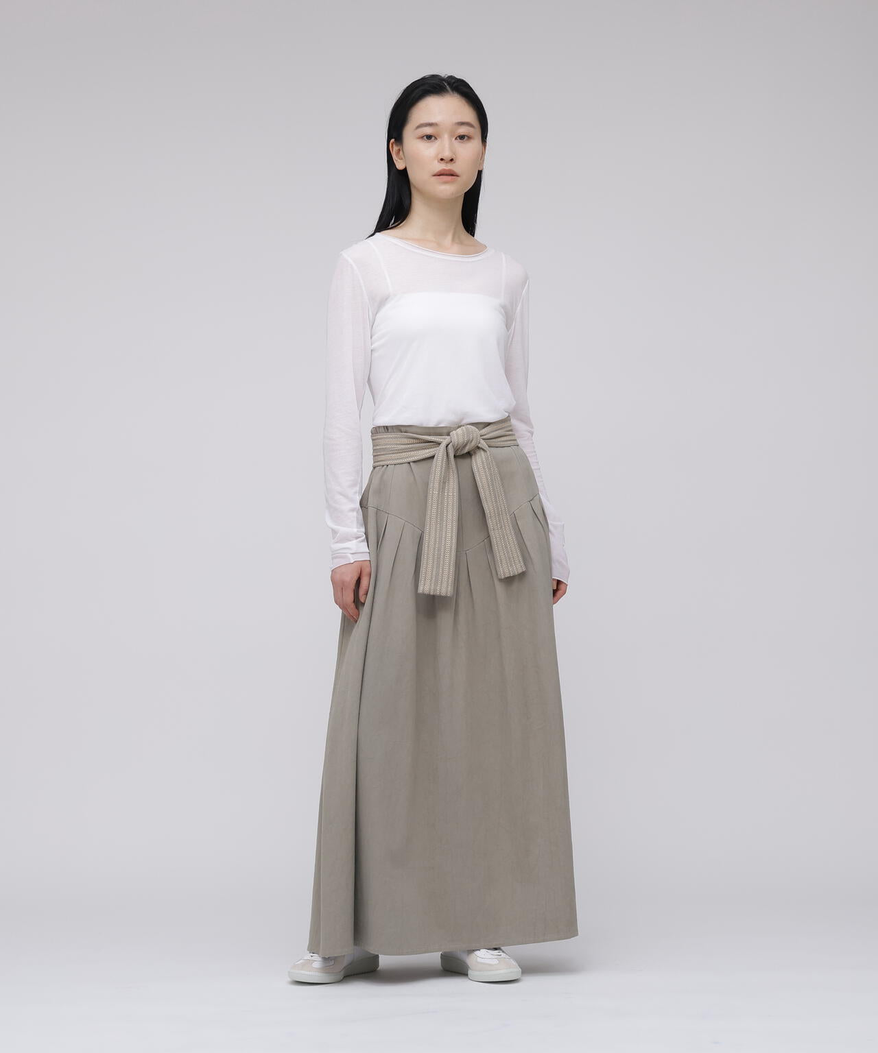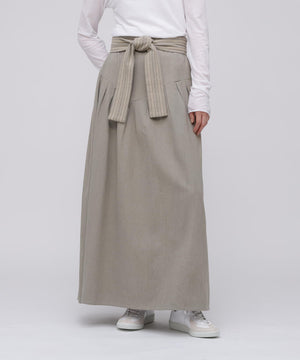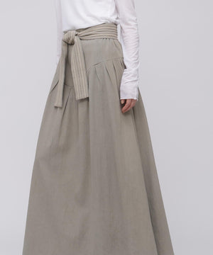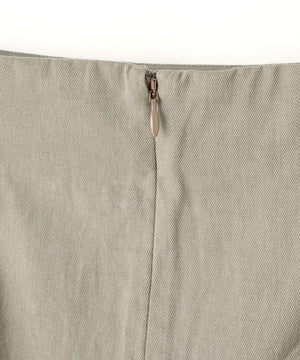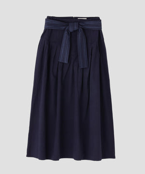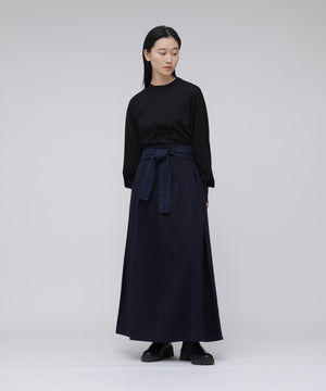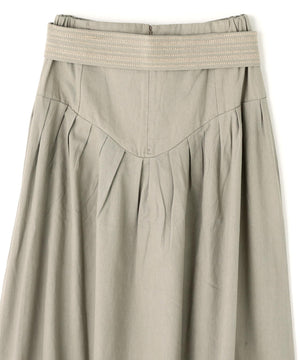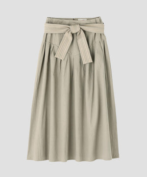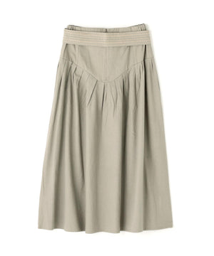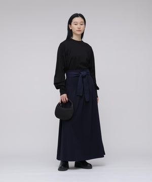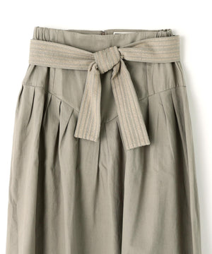 コットンを用いたスカートは、今シーズンのIKORREらしいハイウエストと、生地を贅沢に使ったボリューム感にこだわった表情。ウエストを絞ってより女性らしいスタイルを作り上げるようになっています。