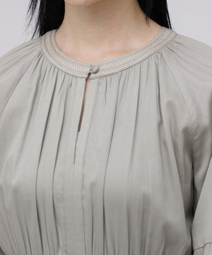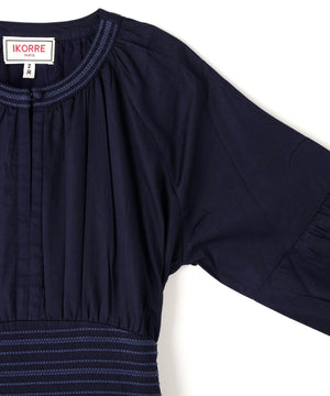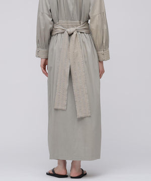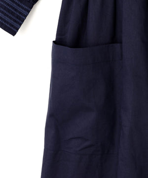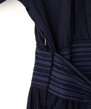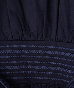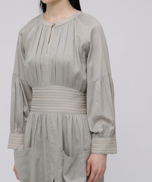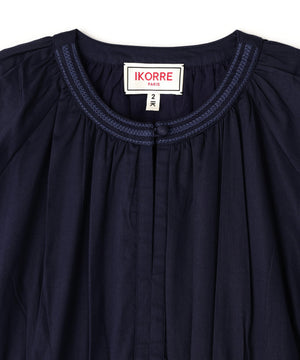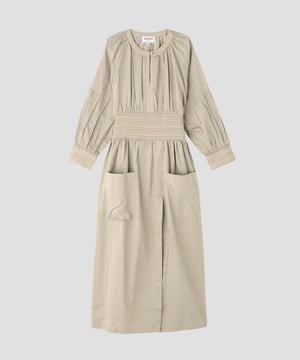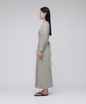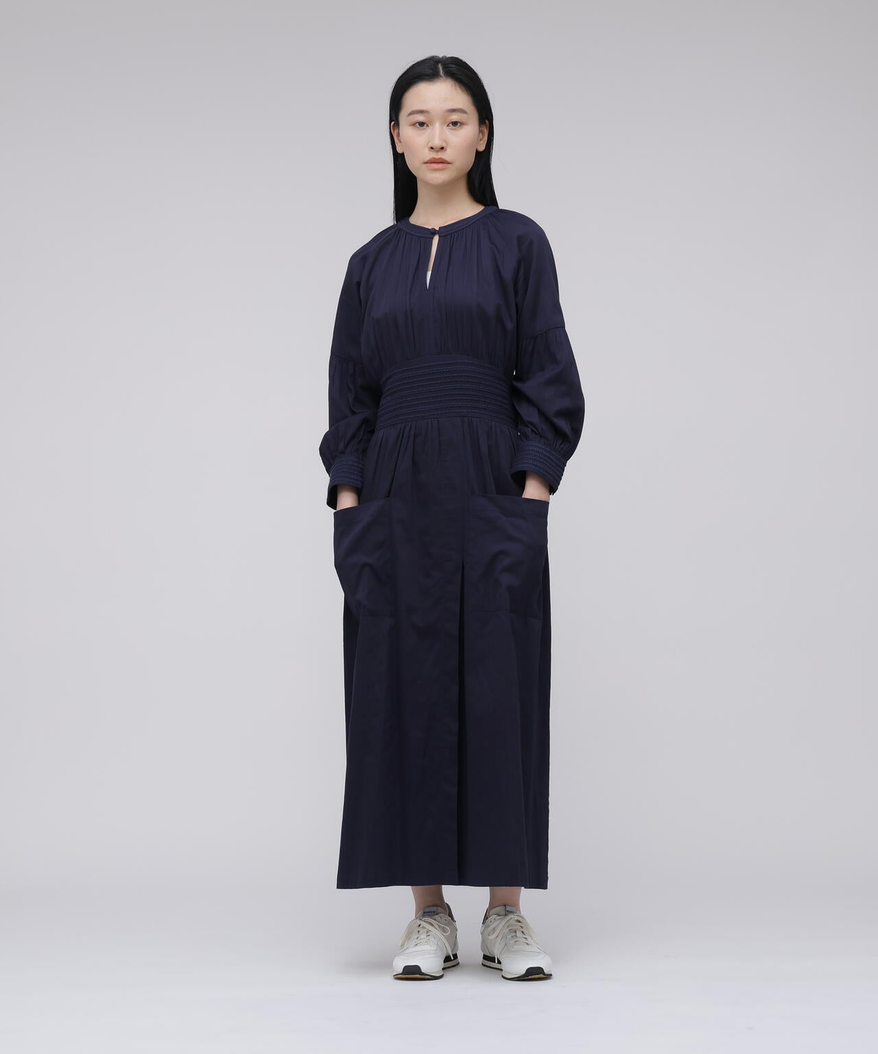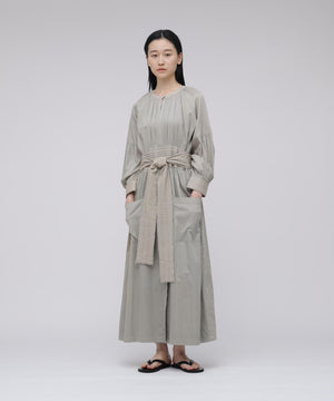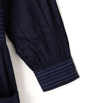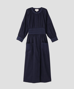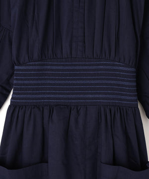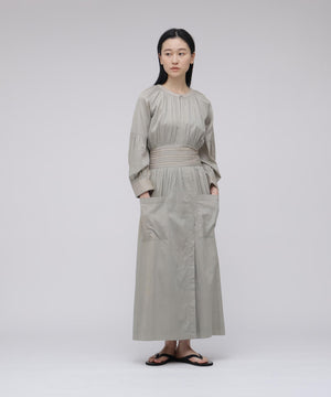 コットンを用いたワンピースは、ブランドのアイコニックカラーであるインクカラーを中心に展開。天然素材の贅沢な着心地とボリューム感にこだわることにより表情を出しています。ウエストの切り替えも少し上に位置して脚を長く見えるようにしながら、大人の女性の体型の変化にも対応できる丸みのあるシルエット、セクシーではなく、フェミニンなスタイルが特徴です。