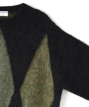 軽やかでソフトな風合いのオーバーサイズニット。ふんわりとした毛足とクラシックな大柄のアーガイルがアクセント。