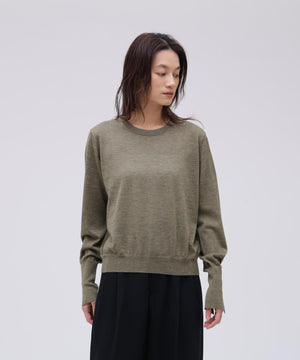 極上な肌触りのカシミヤセーター。ハイゲージでコンパクト、ニットならではの上質な風合いです。袖口にはスリットを入れてフェミニンな表情を加えながら、カジュアルにもシックにもスタイリングできます。
