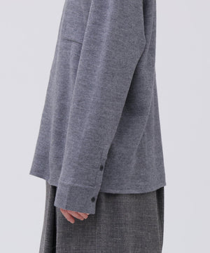 ニュージーランド南部のメリノウールの中でも希少性の高い部位の原料を用いたオーバーサイズのニットカーディガン。圧縮ジャージーのような雰囲気をもたせたATONオリジナル素材。コートで使われるパターンをニットに落とし込んだデザインで、袖回りのシルエットが美しいニットアウターです。襟は太い糸で編立てて表情をプラスしています。