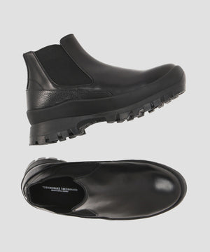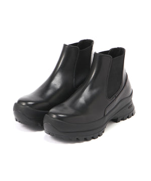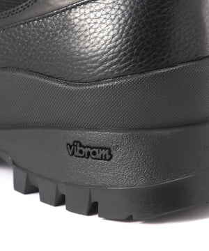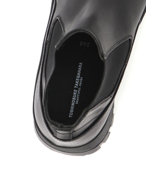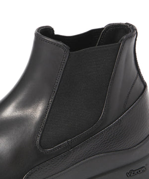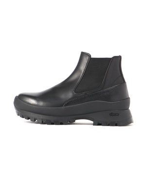 サイドゴアブーツをベースに軍靴のディテールを取り入れたアイテム。快適でラグジュアリーなクッションインソールと、重厚なフォルムのヴィブラム社製のBRISTOL SOLEを採用。