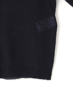 モヘアとアルパカをブレンドした軽やかな糸を編み上げ、ふんわりとした質感を生み出したモヘアニット。THE LIBRARYではシックなネイビーで別注をしました。ふわっとした柔らかく繊細な起毛感が特徴です。