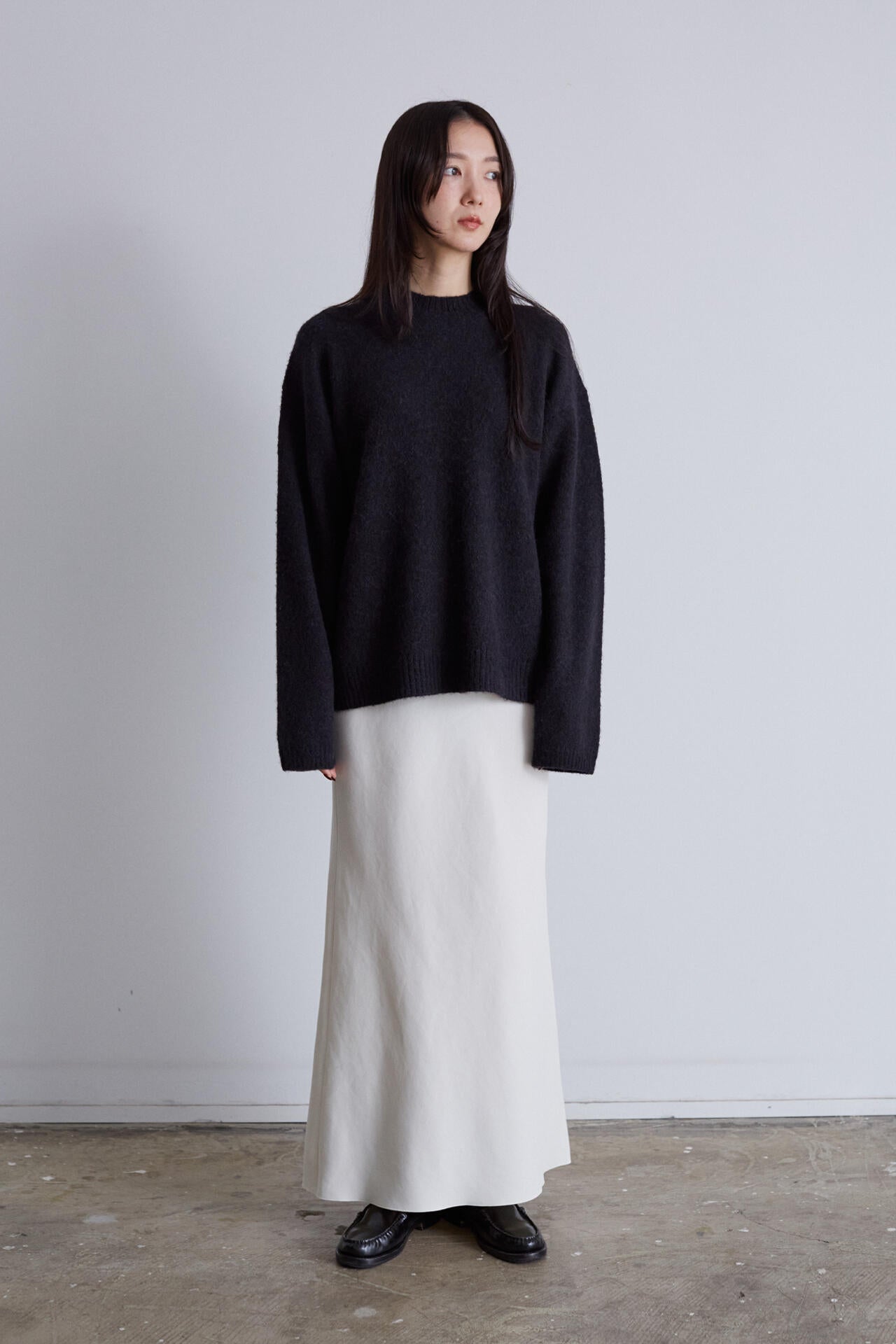 デリケートでありながらしっとりとした柔らかさを実現した1着。風合いはソフトでシルクのようなさらさらとした手触りの繊維の完璧な融合を表現しています。ナローシルエットを生かした、抜け感のあるリラックスしたスタイリングを体現できます。