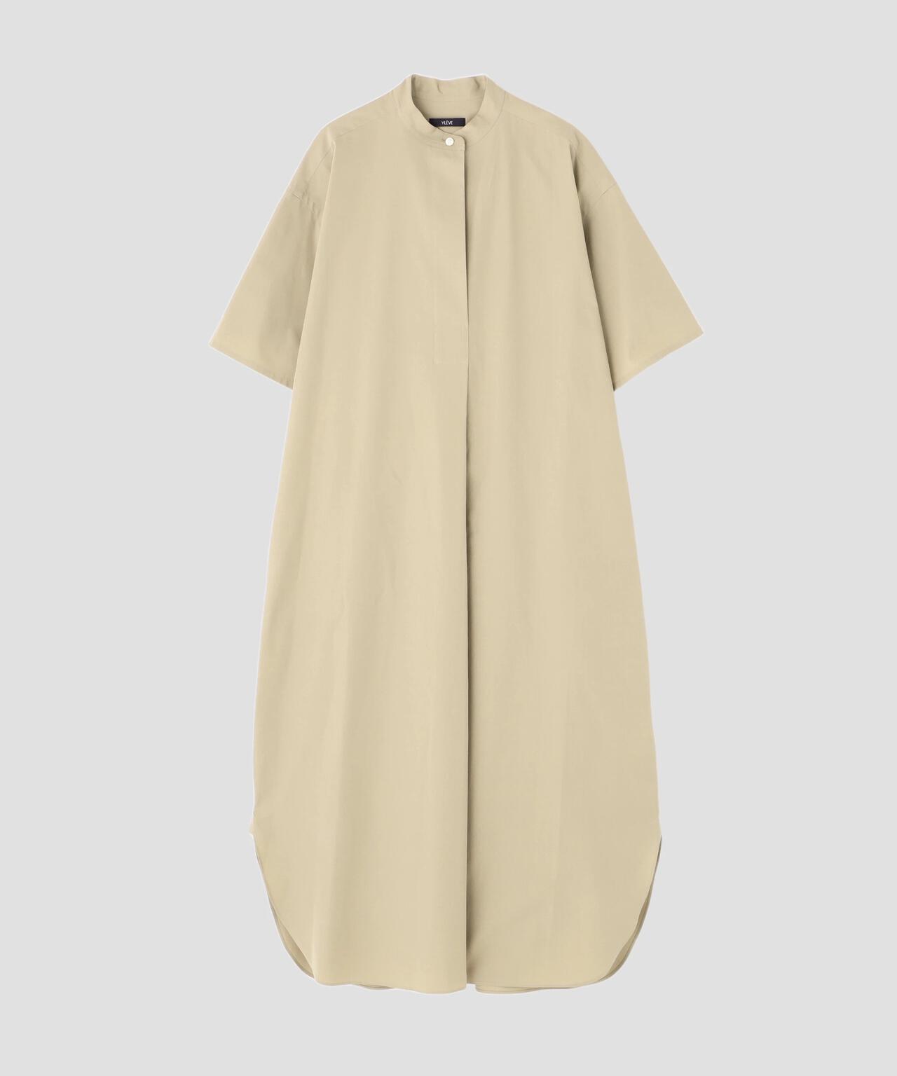 イギリスの高品質なシャツ生地メーカー、THOMAS MASON (トーマスメイソン)の生地を使用したワンピース。120/2の超長綿糸を使用した高密度タイプライターに、ラフでしなやかな風合いになる加工をした素材のスキッパーワンピースです。袖をロールアップしたニュアンスのある着こなしもおすすめです。