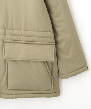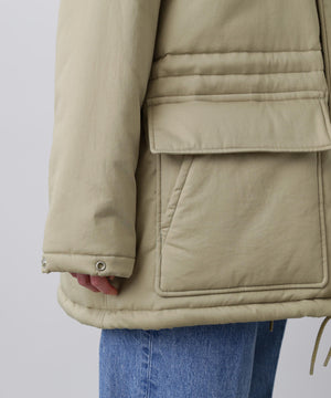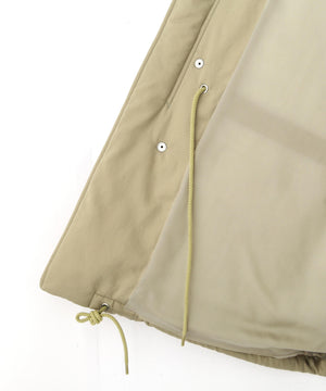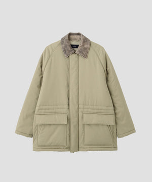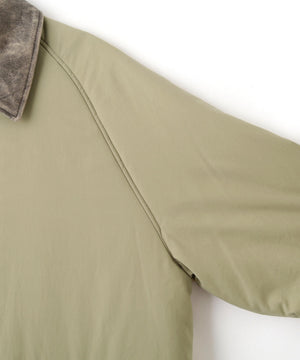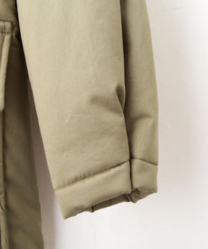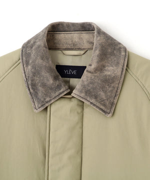 Finxコットンサテン、襟レザーも特殊な加工を入れてヴィンテージ感を出した中綿コートです。