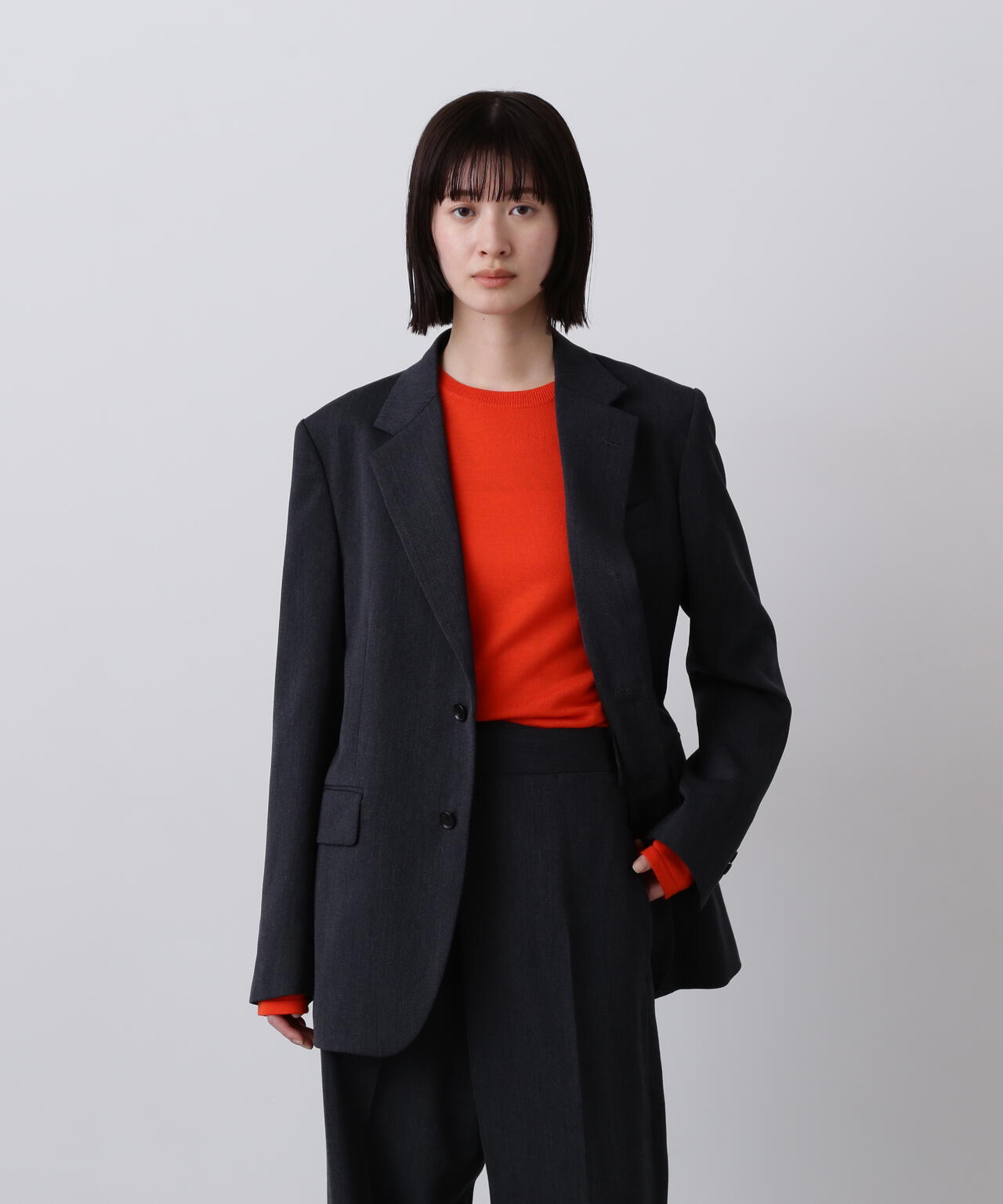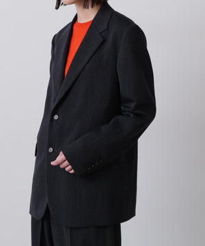 撚りを工夫した細番手のウールをトリコチン組織にすることで、肉感がありながら落ち感のある素材に仕上げました。ゆったりしたシルエットのテーラードジャケットです。