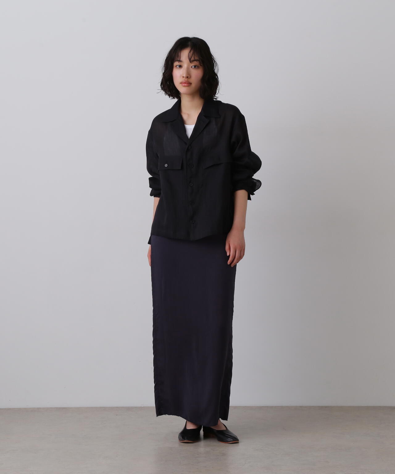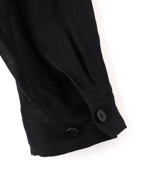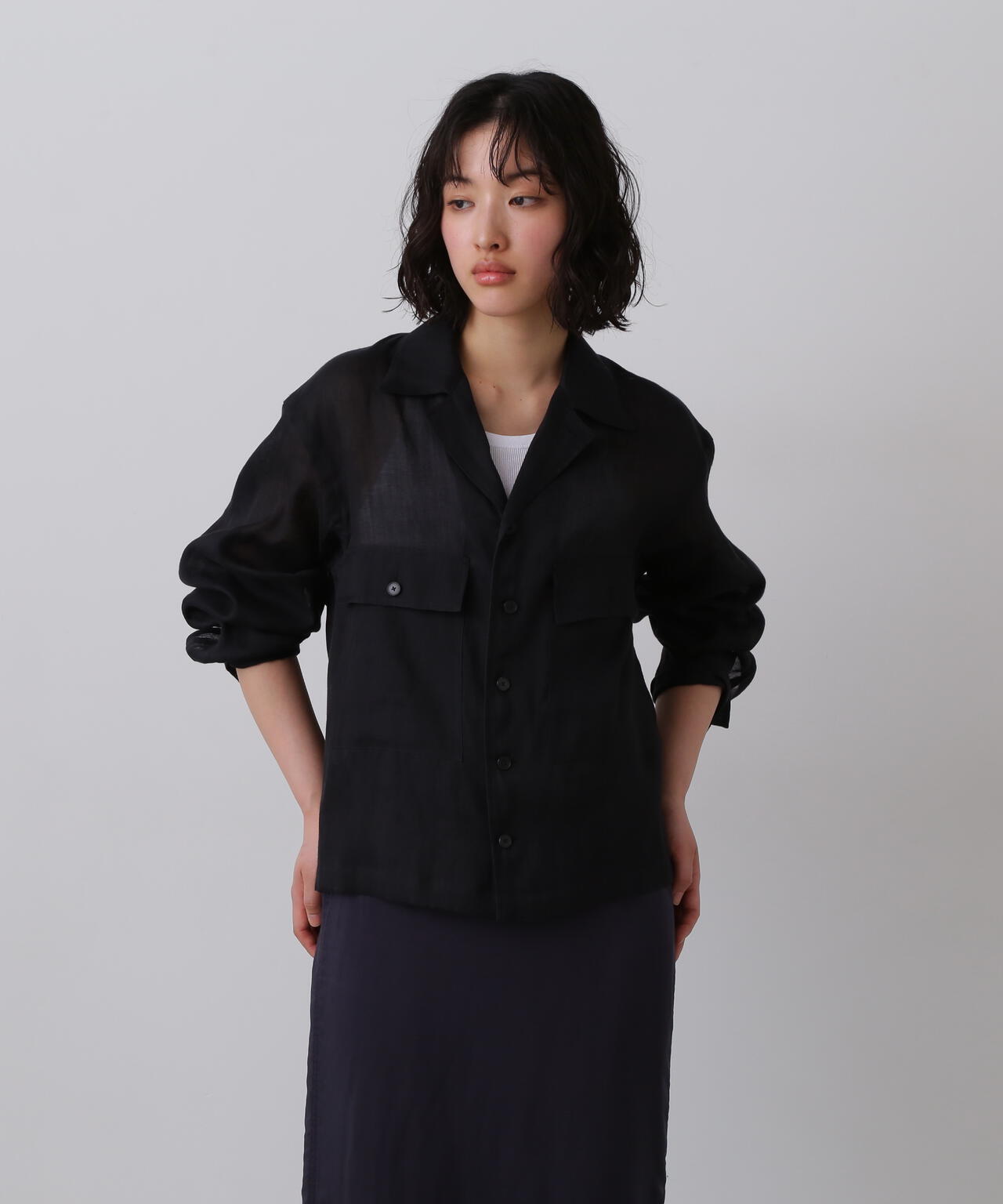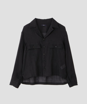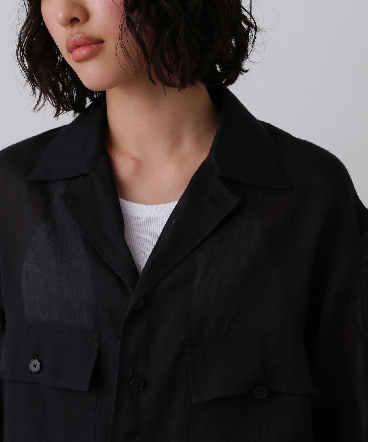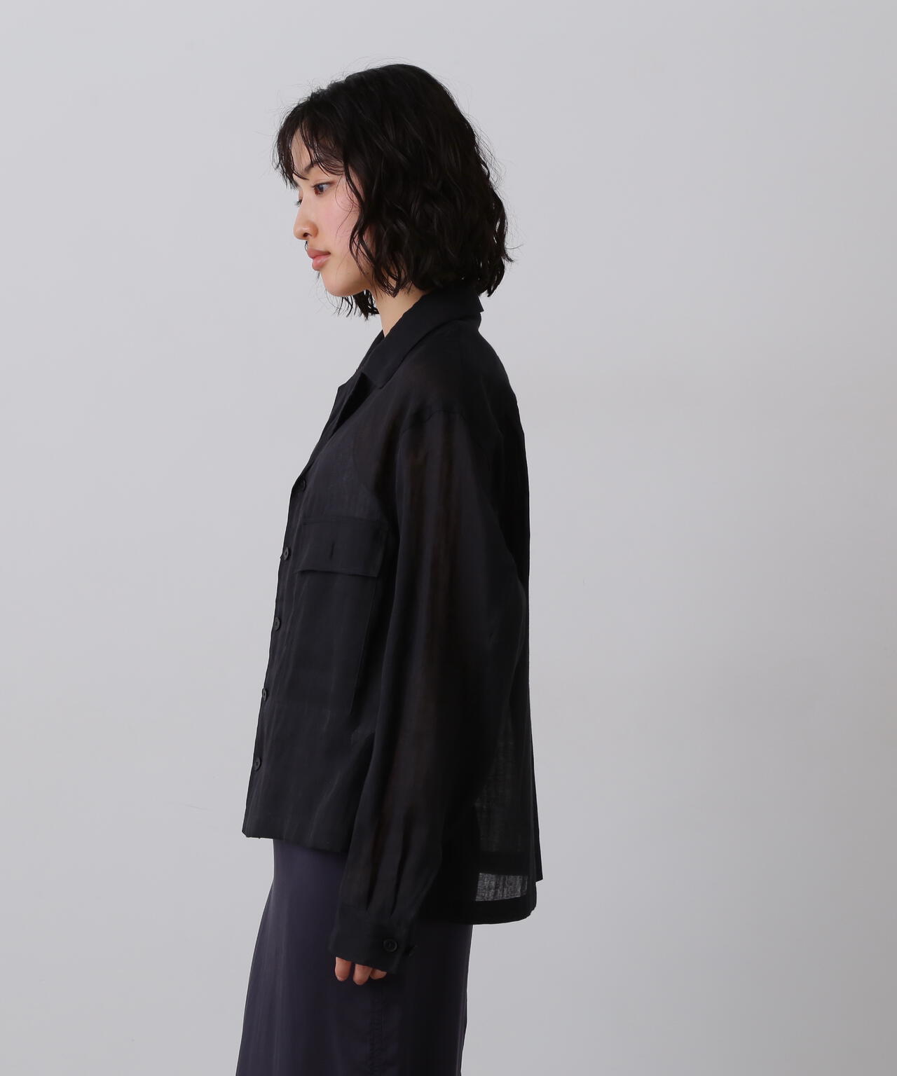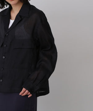 二重にすることによりさりげない透明性や、やさしく清涼感のある風合いが特徴です。素材の軽さと透け感を活かしたショート丈のシャツジャケットです。