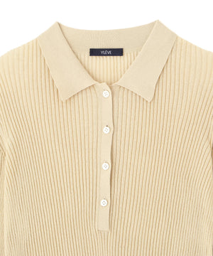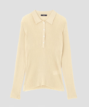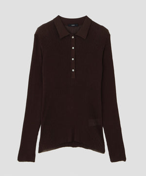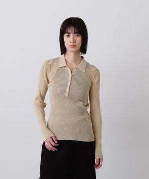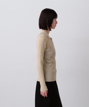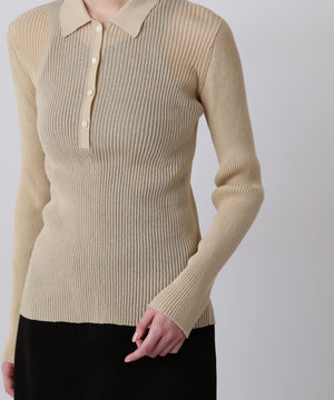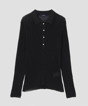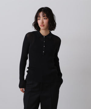 YLÈVE / SHEER RIB KNIT LONG SLEEVE POLO