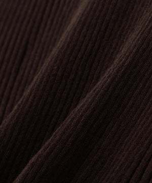 極細のコットンナイロン糸の、絶妙なハリ感とガーゼのような上質な透け感のリブ。リブのキックバックを活かしたタイトポロニットです。