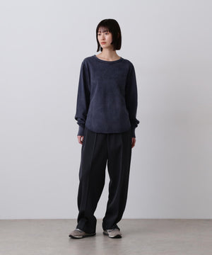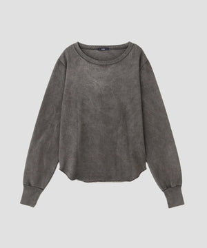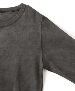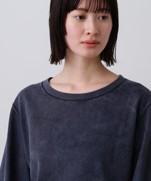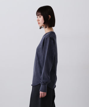 生地は着るほどに味がでる空紡糸を使用しており、さらに製品で顔料染め加工を施すことでムラ感がある染まり具合が特徴です。袖がリブ仕様のフットボールデザインのロングTシャツです。