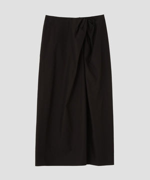 縦横ともに細い番手のフィンクスコットンを使用し、高密度に織り上げたウェザー素材です。立体的なツイストディテールがアクセントのタイトスカートで、ヒップにゆとりを持たせているため、カットソーなどと合わせやすい一着です。