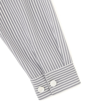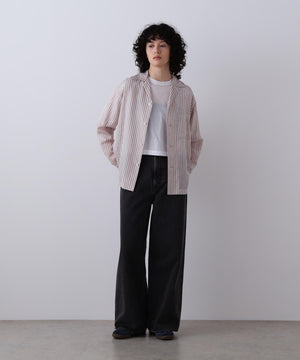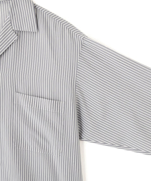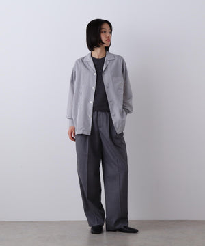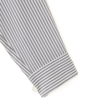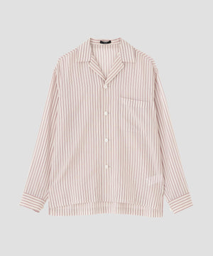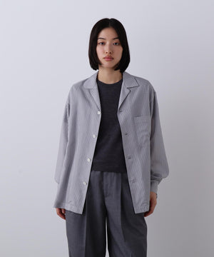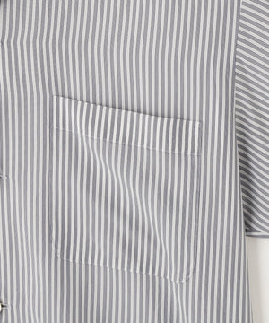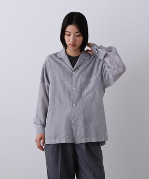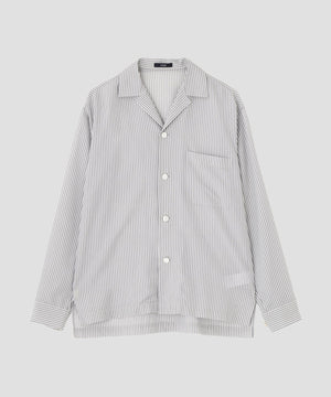 ヴィンテージの裏地をベースに開発した素材を使用。タテ糸に追撚をかけることで生まれた、柔らかさの中にシャリ感を感じる独特の風合いが特徴です。袋縫いなど丁寧な縫製で仕立てた、リラックス感のあるボックスシルエットのパジャマシャツ。上質な素材感と仕立ての良さが際立つ一着です。
