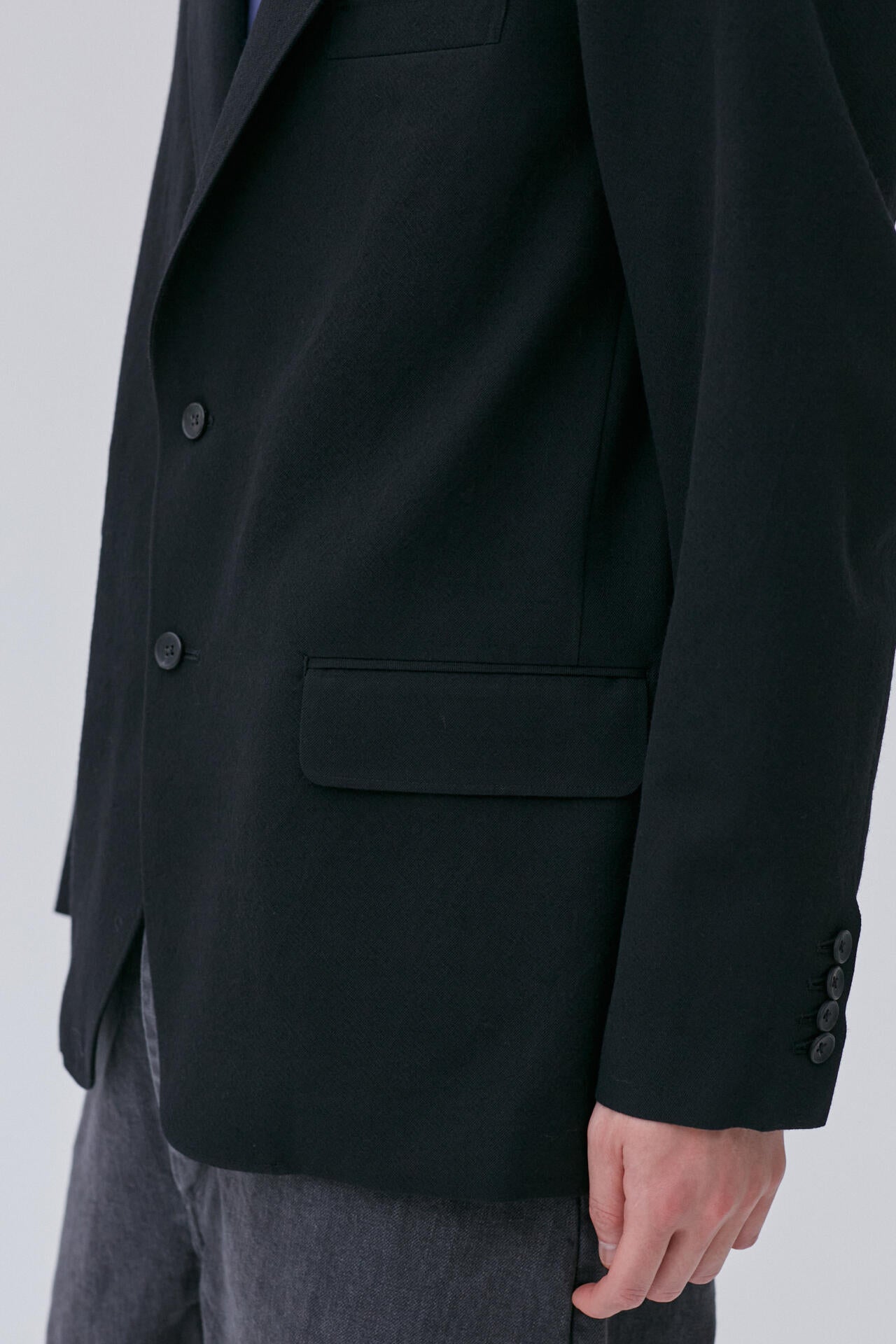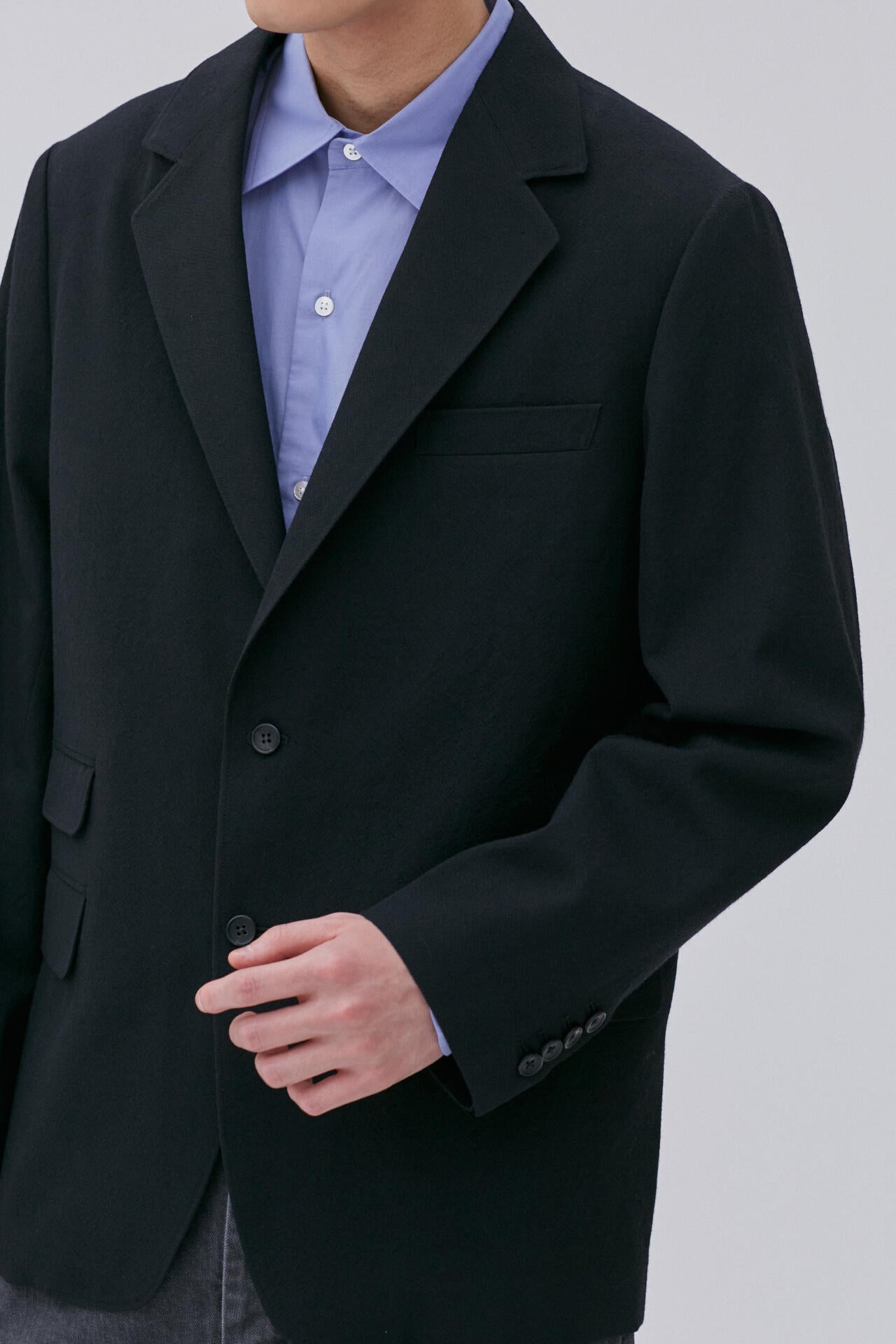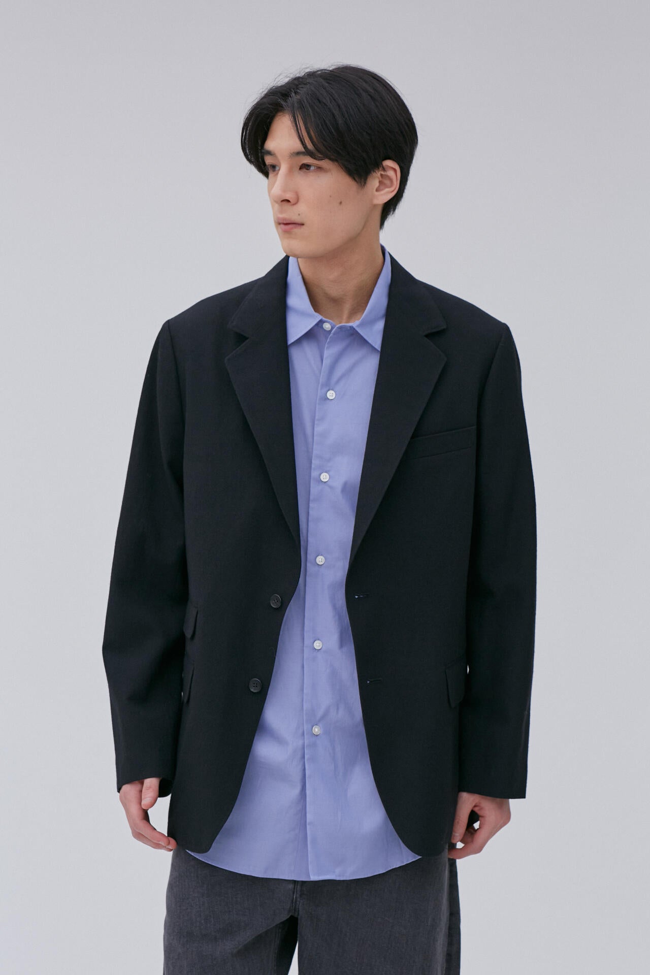 きめ細かく毛羽立たせたウールギャバジンを採用した2Bジャケット。不揃いな表面感、上品なシワ感が特徴です。