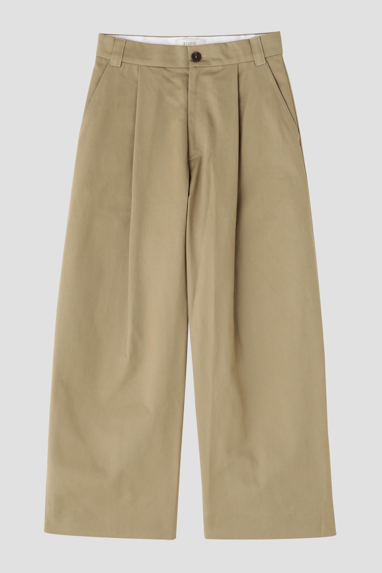 STUDIO NICHOLSON / PEACHED COTTON TWILL DEEP PLEAT VOLUME PANT
