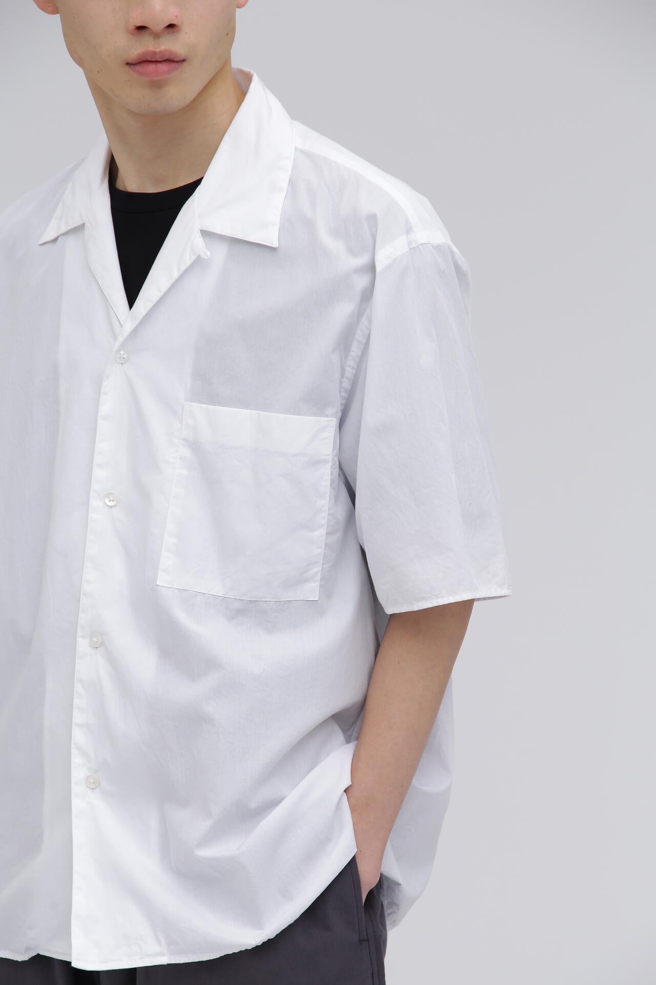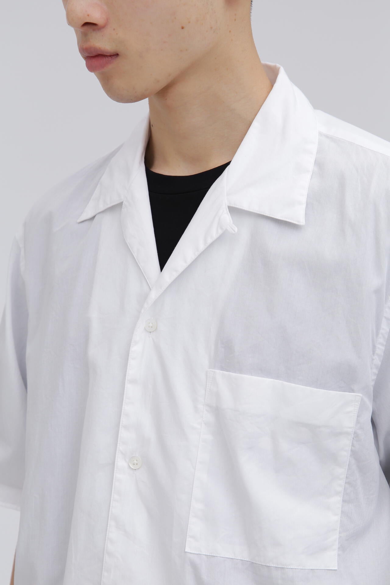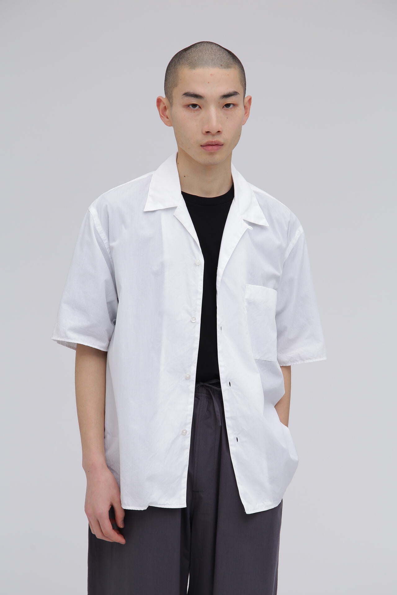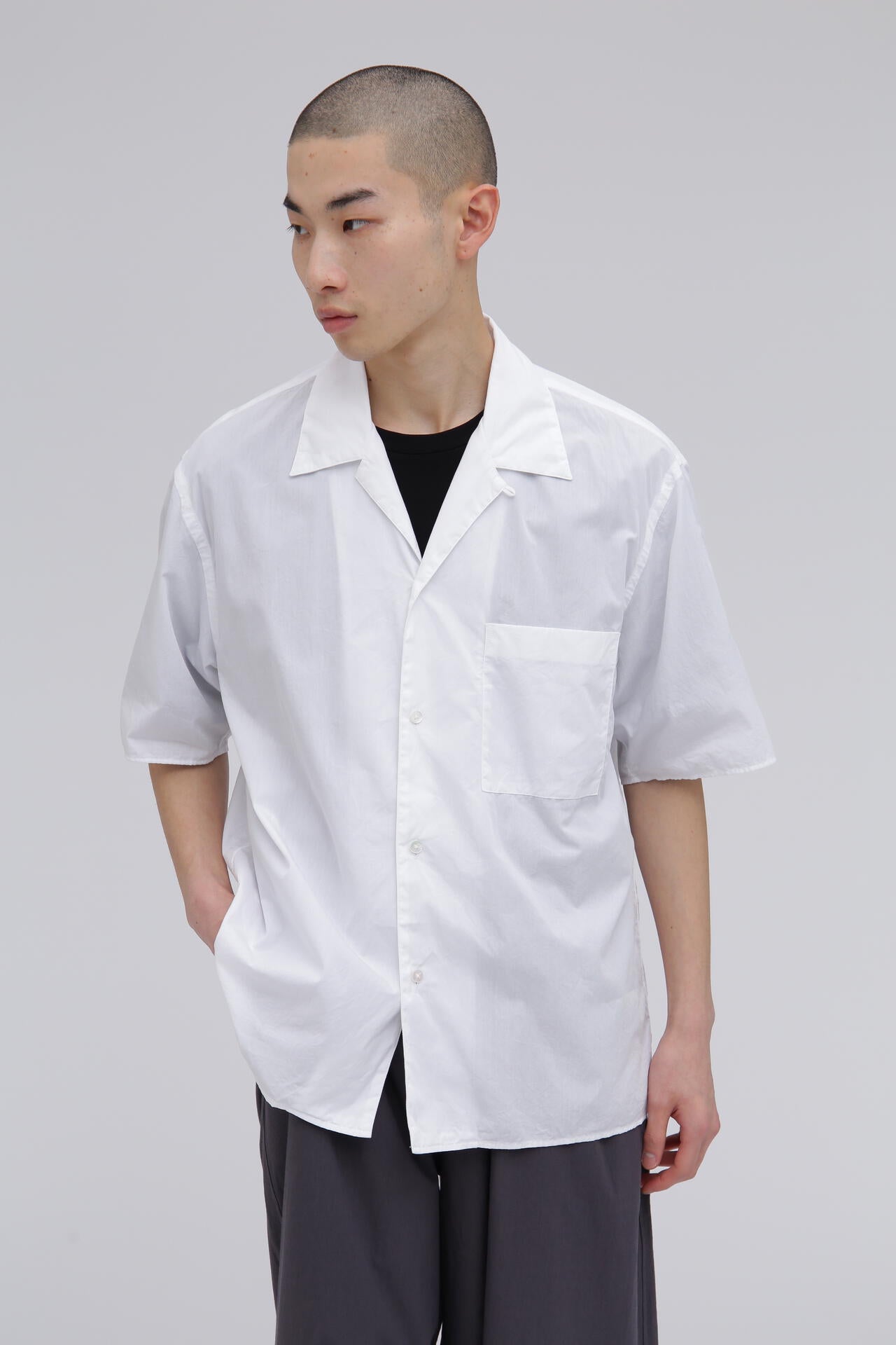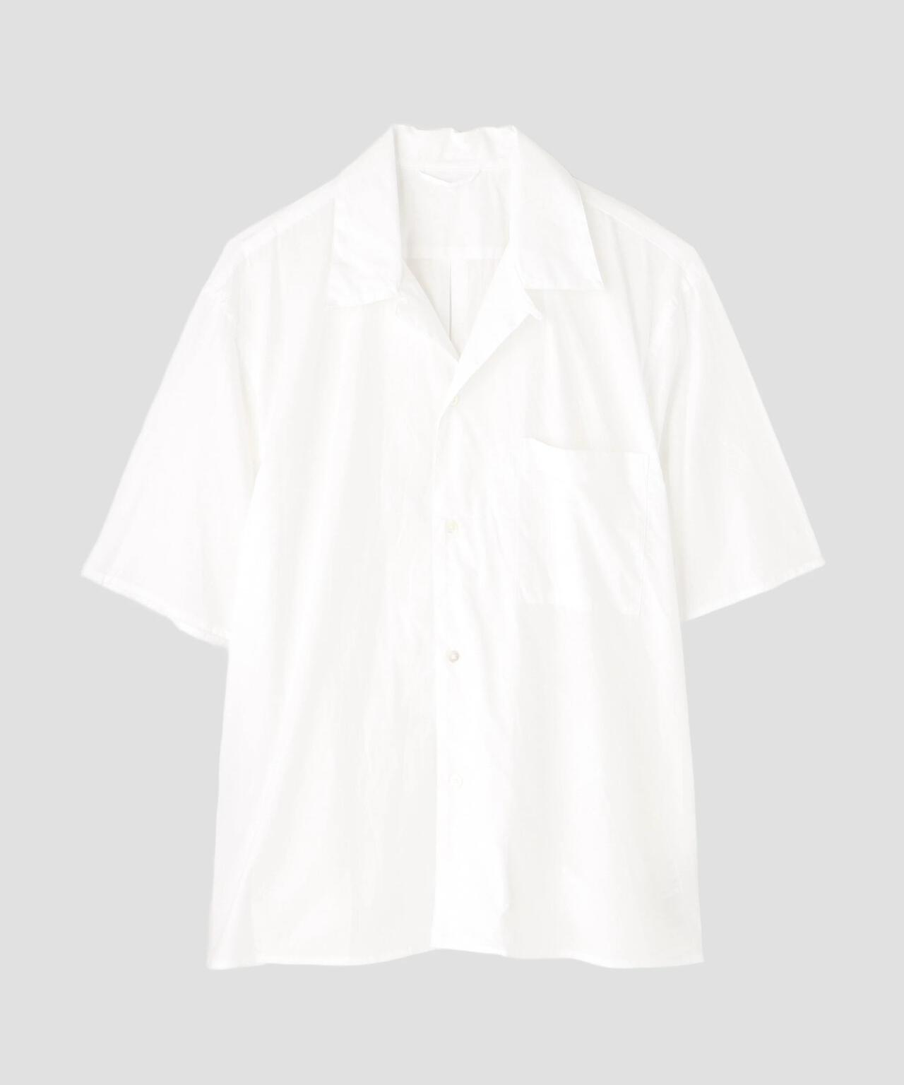シャトル織機で時間をかけ高密度に織り上げた生地のオープンカラーのシャツです。超長綿の自然な光沢とクタッとした柔らかな肌触り、綺麗すぎずややラフな表面感が特徴です。