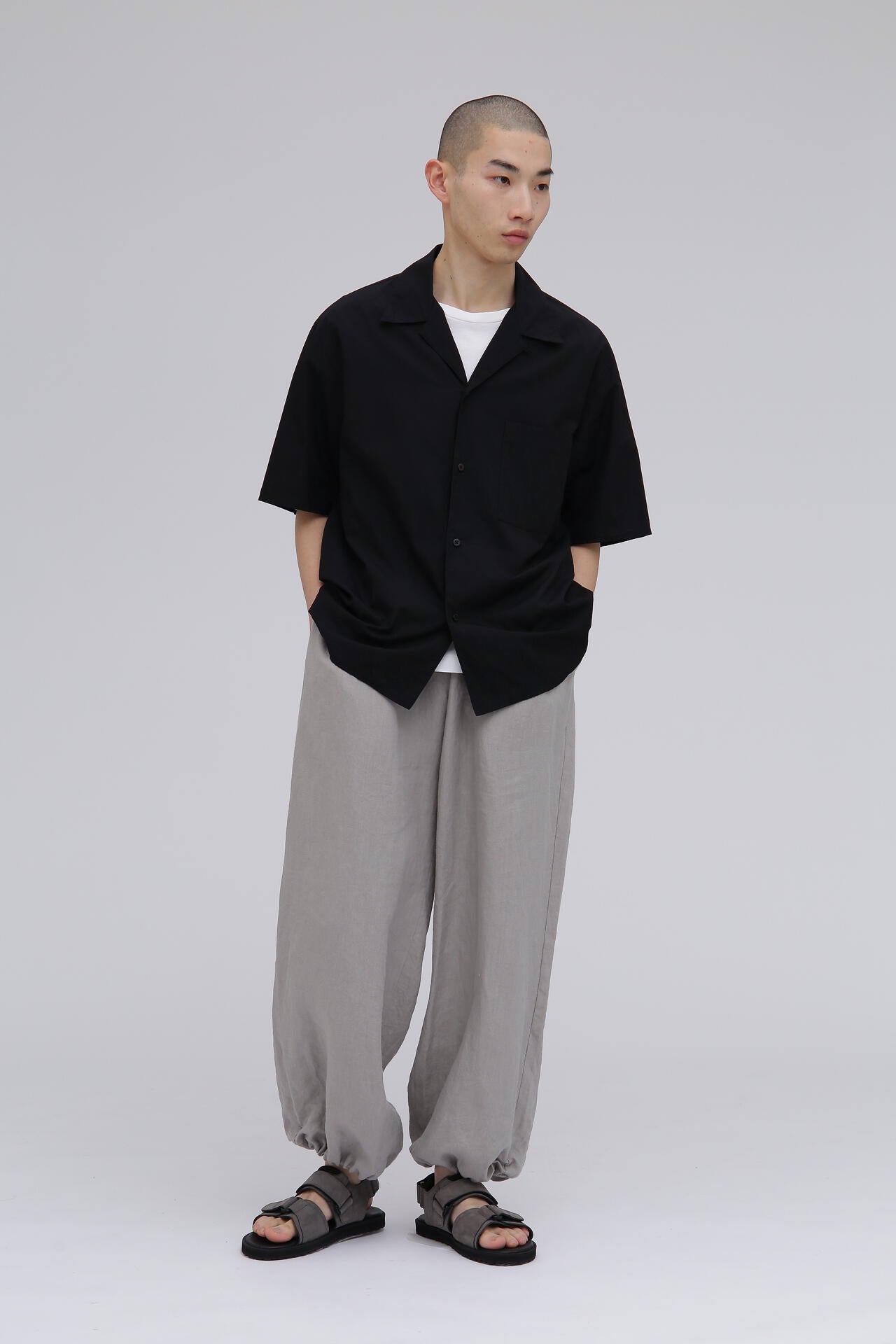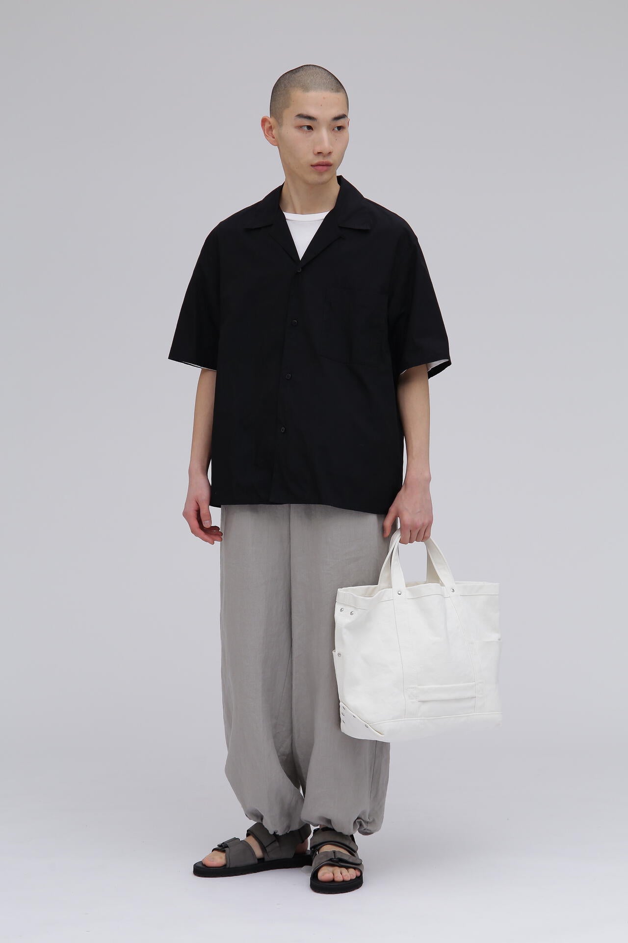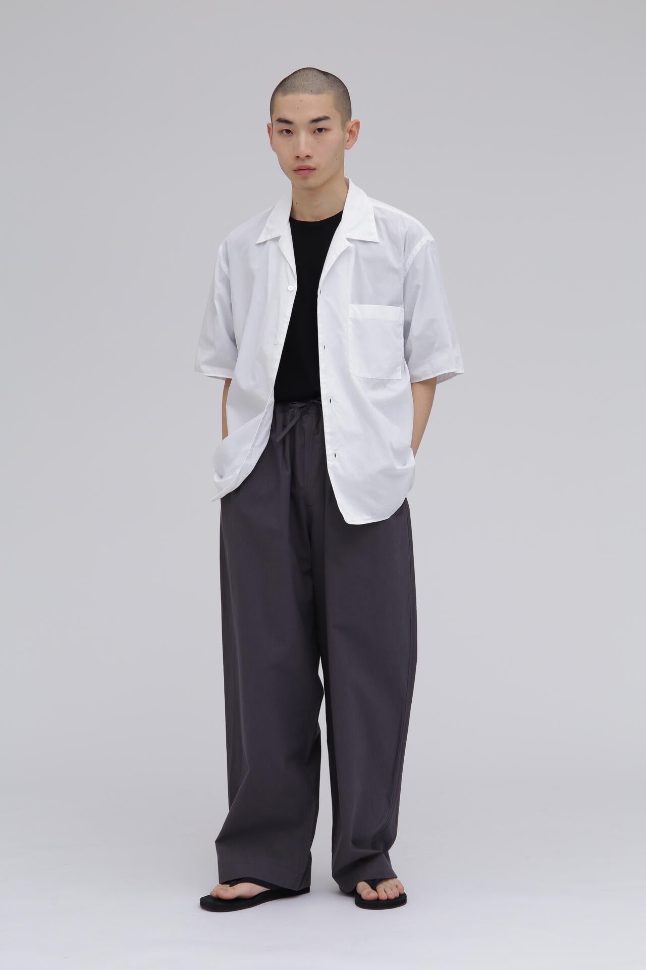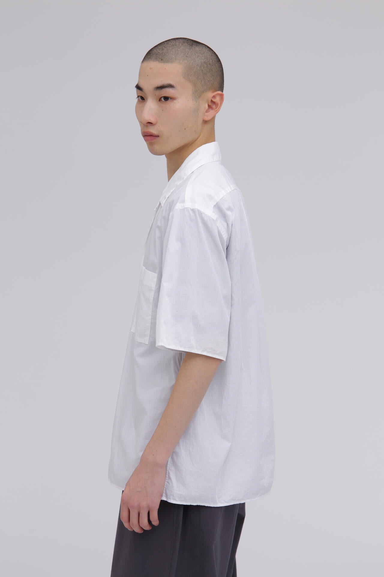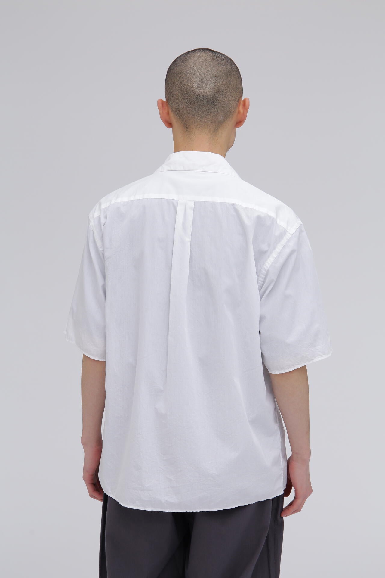シャトル織機で時間をかけ高密度に織り上げた生地のオープンカラーのシャツです。超長綿の自然な光沢とクタッとした柔らかな肌触り、綺麗すぎずややラフな表面感が特徴です。