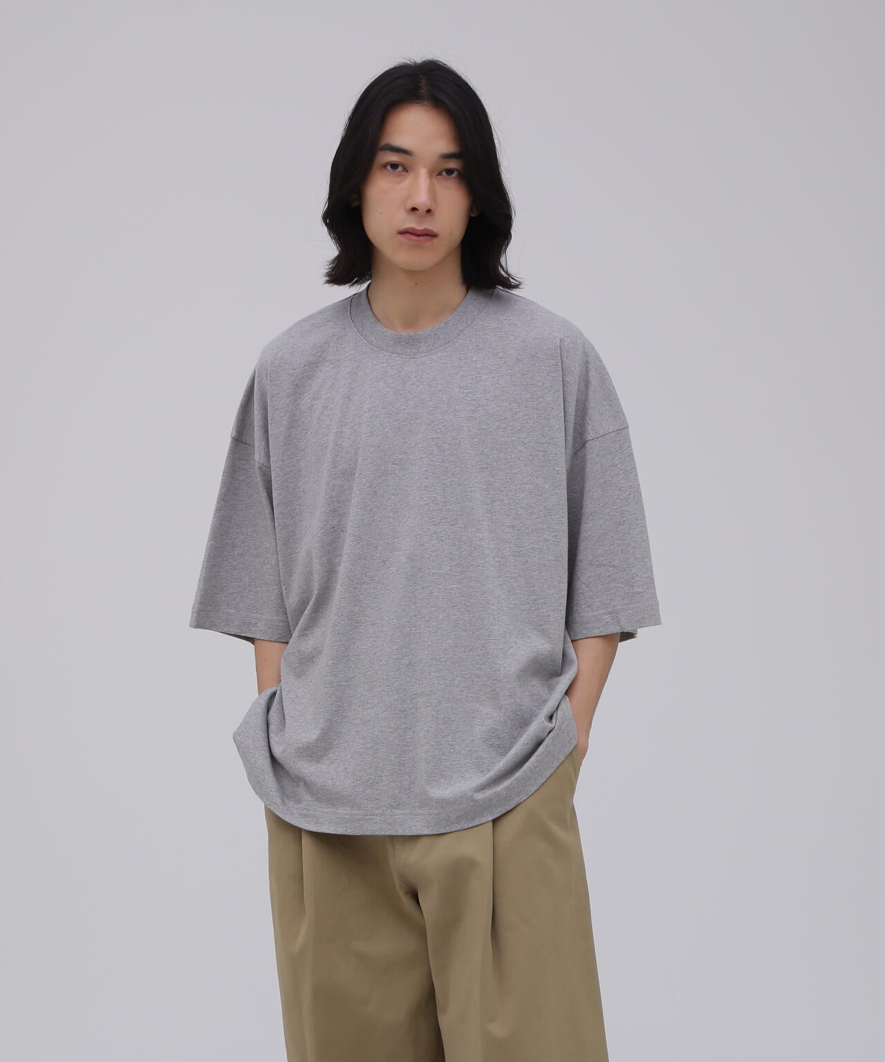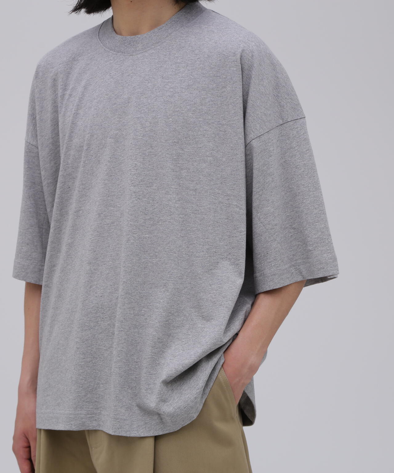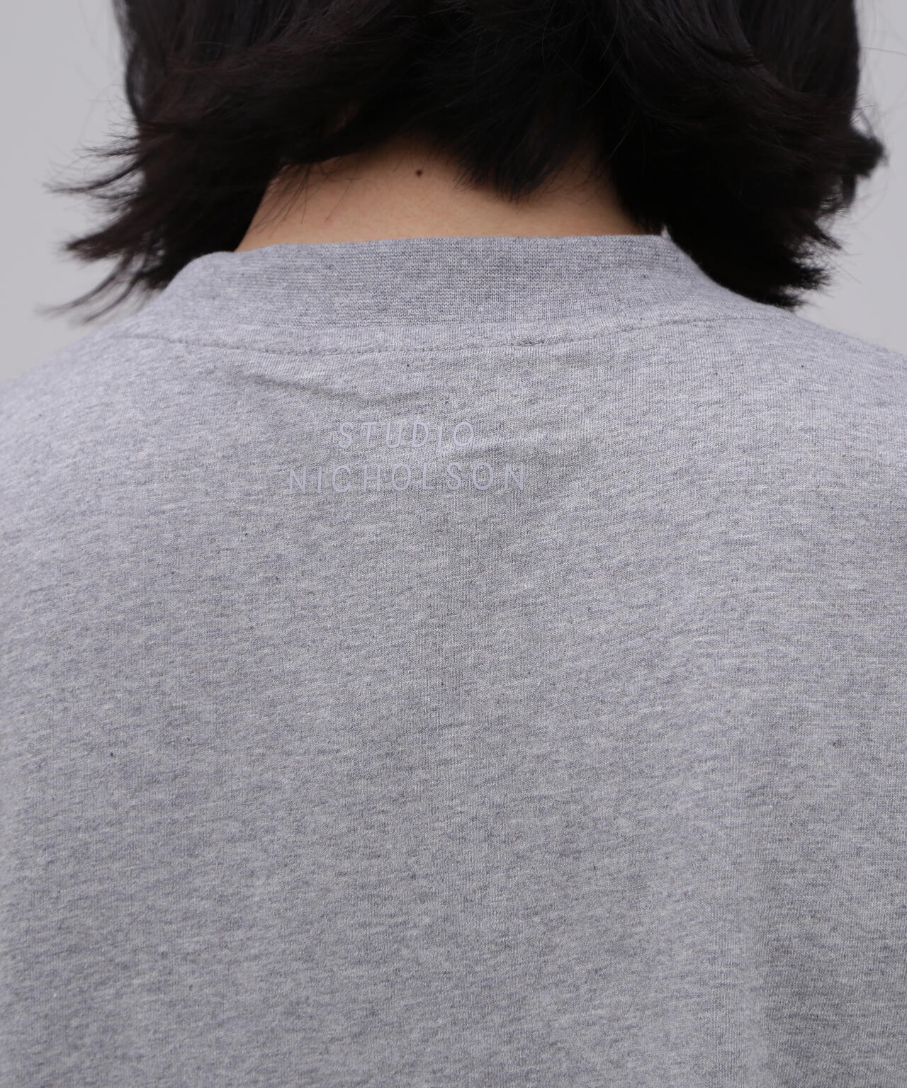 STUDIO NICHOLSON / GARMENT DYE DENIM JERSEY BRANDED SHORT SLEEVE T SH