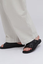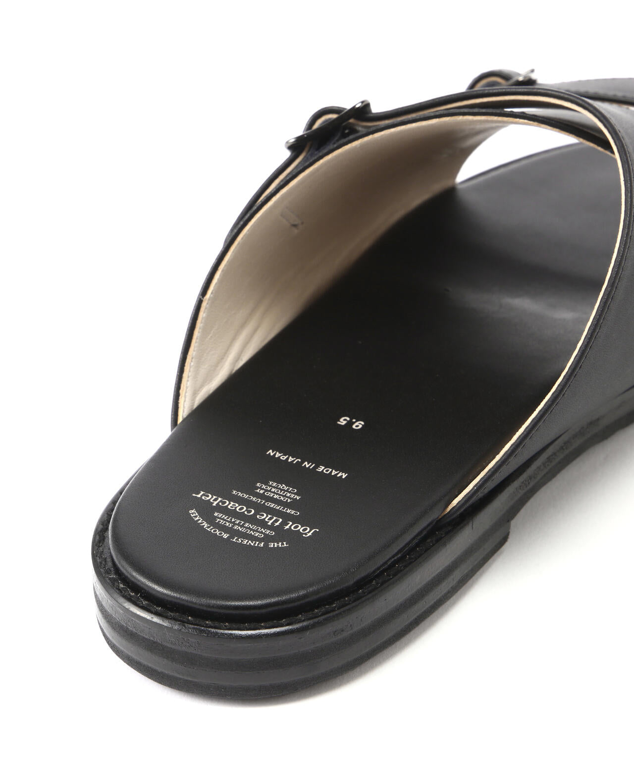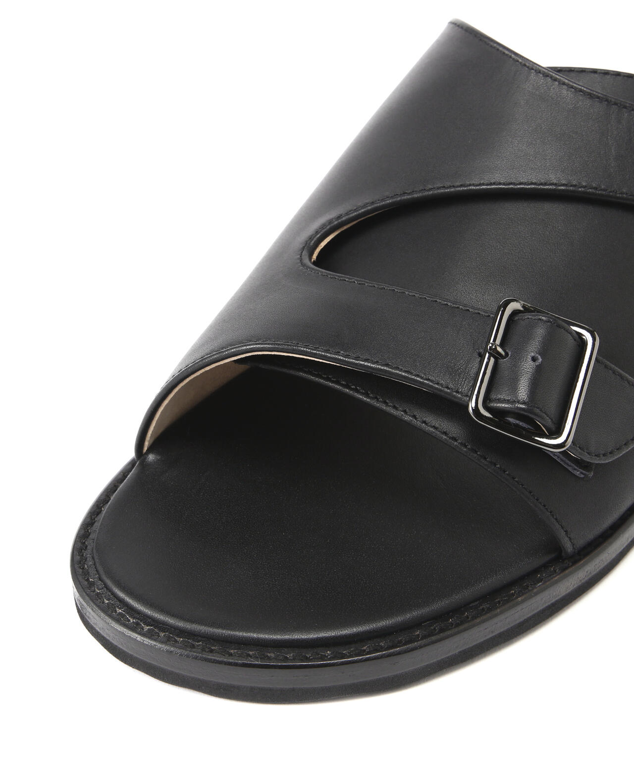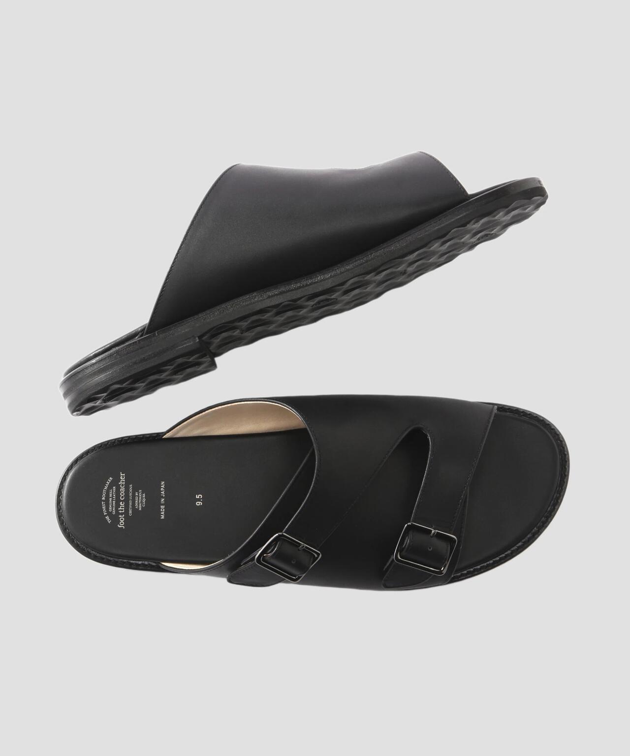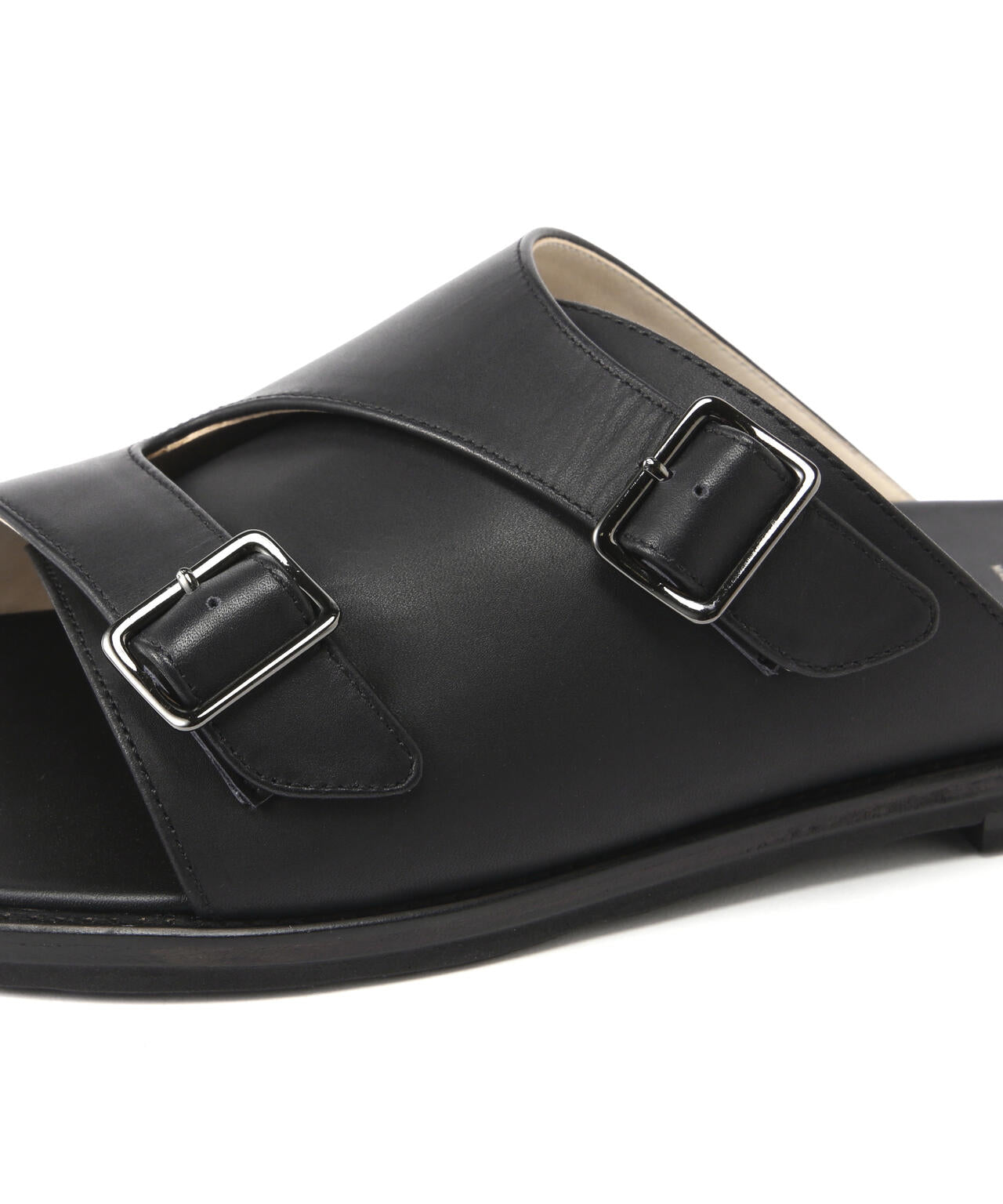足の形状に沿ったオブリークラストを用いたサンダル。特徴的な2本のベルトを甲部に、アジャスタブルなデザインに仕上げました。アッパーには程良くオイルを含んだきめの細かいステアハイドを用い、ライニングには吸湿性に優れたホースレザーを採用。ソールにはVibram®社製のTILE MORFLEXでグリップ力と耐久性に優れた機能性を備えています。