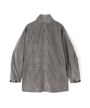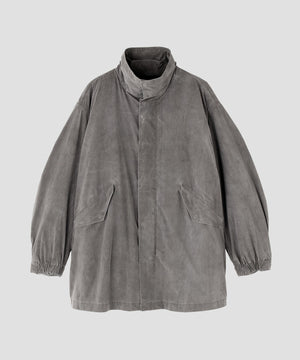アメリカ軍のM-65モッズコートをベースに、フードを無くし、裾を横方向にスパッと切ったようなデザインのショートコート。ナイロンとポリエステルの熱収縮率の違いを生かし、膨らみのある混繊糸を使用した生地に、奈良墨を使用した顔料プリントを施した素材。袖まであるライナーにはウール混の高い生地を使用し、表地も密度の高い素材で真冬でも温かい。シワになりづらく、持ち運びにも便利で、ライナーを外すと3シーズンの着用が可能。