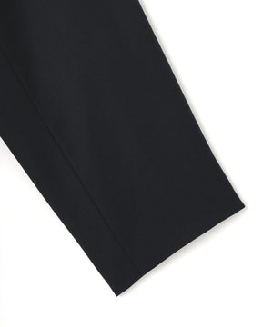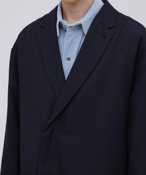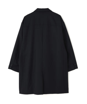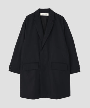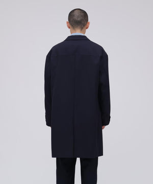 高密度に織り上げた生地に加工を施し、コシを持たせたウールサージ素材のコート。