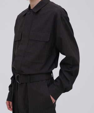 スペインSIDOGRAS社のシャンブレー組織のコットンツイルを微起毛加工した生地を用いたジャンプスーツ。