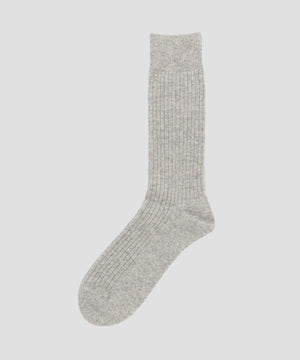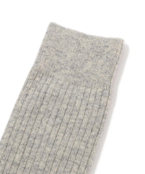 強燃カシミヤを用いた畦編みのソックス。履き口にずり落ち防止の編み組織を配し、丁寧なつくりとクオリティがYonetomiらしいアイテム。