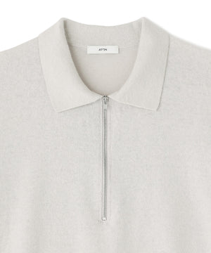 ATON / LINEN SHORT FUR ZIP UP POLO SWEATER