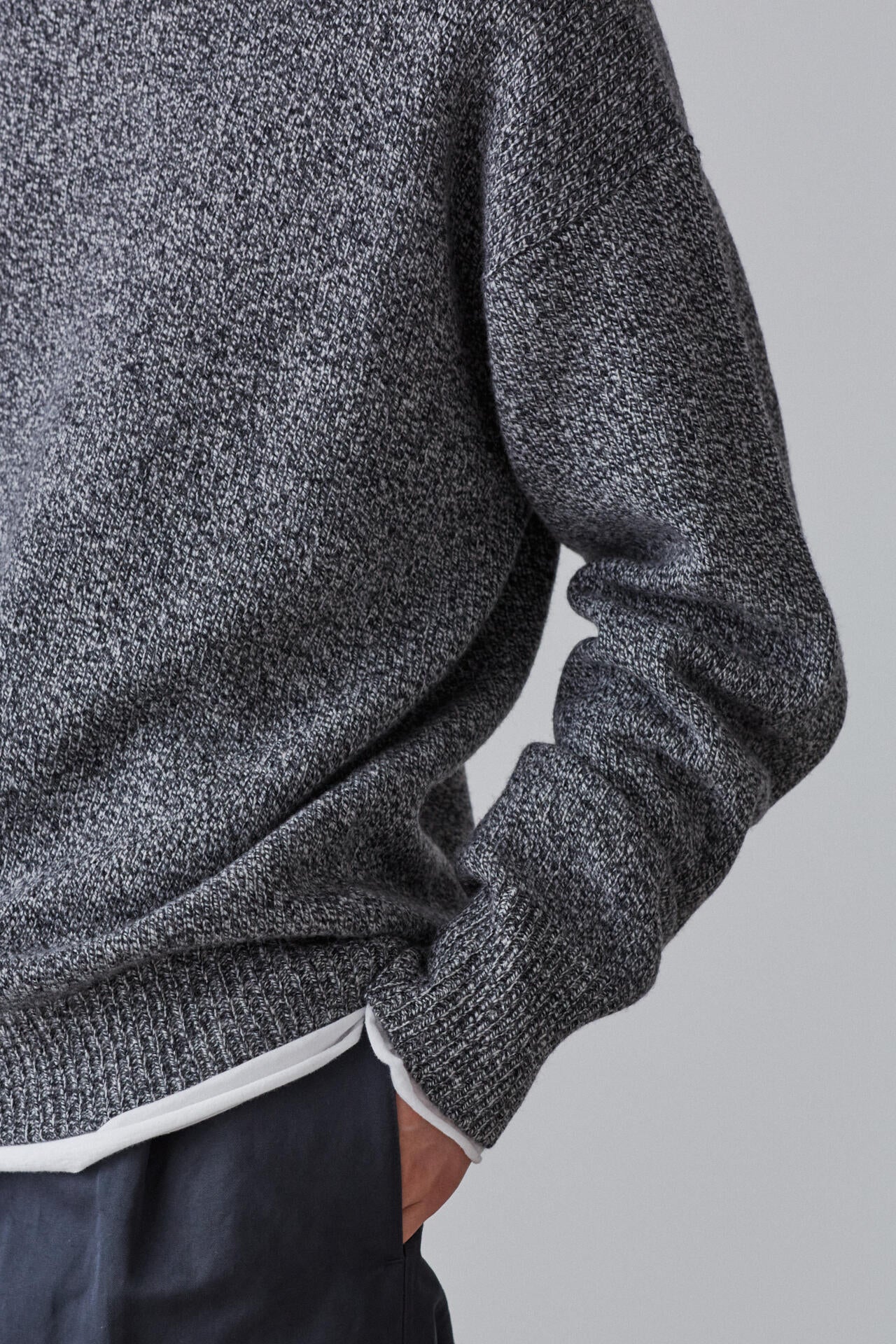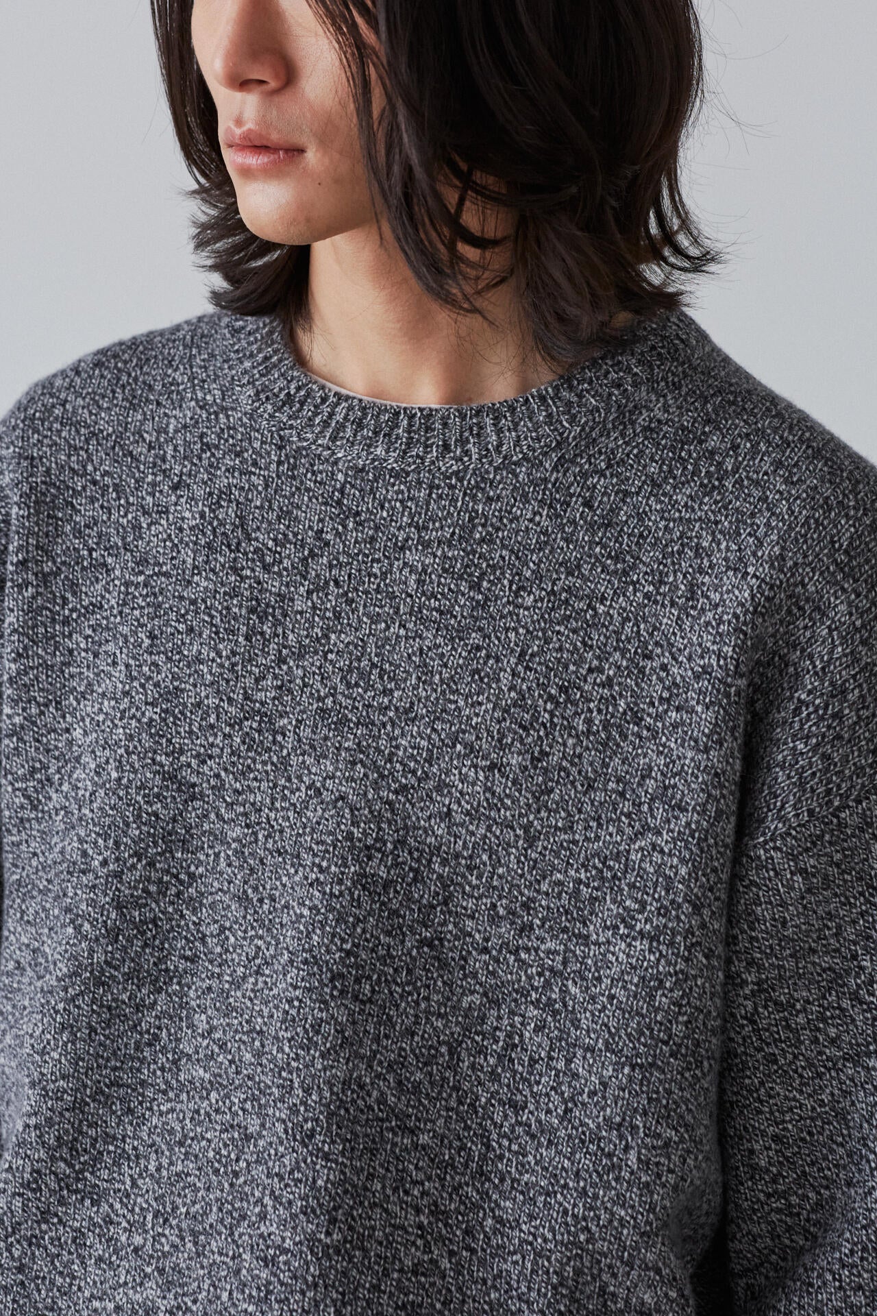 オーストラリア産のスーパーファインウールとモンゴル産のカシミヤをブレンドした、スポンディッシュな糸を高密度に編んでいます。オーセンティックなデザインのゆったりしたプルオーバーです。