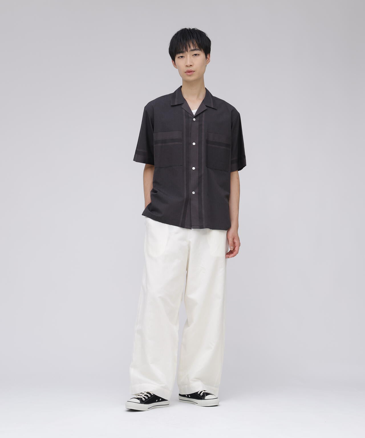 生地端に柄を入れたコットンテンセルのドビーシャンブレー素材。ゆったりとしたシルエットのイージーパンツです。