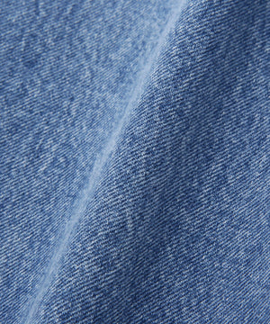 オリジナルの13.5ozデニムは、旧力織機で織られた白耳のセルビッチデニム。隠しリベットや渡り閂、環縫いなど本格的なデニム仕様。フェイド加工は職人の手によって1本ずつ加工を施されたこだわりの加工です。加工している為生地の特性上斜行があります。#020は経糸、横糸ともに硫化ブラックで染め、製品洗い加工の負担を低減した新しい技術を採用。#110は、水を40%、化学薬品を50%削減したサスティナブルな染色。ゆったりとしたバギーシルエット。シルエットの関係で外脇はロック始末です。