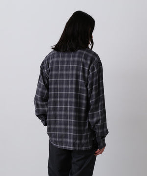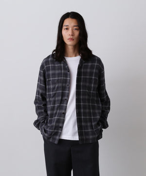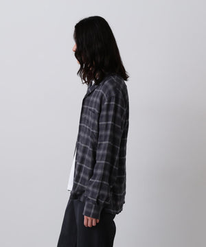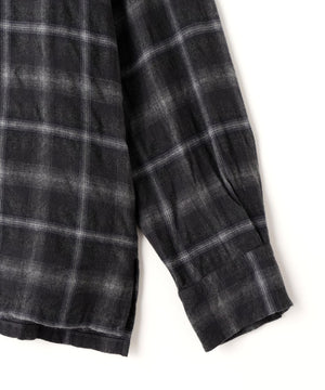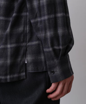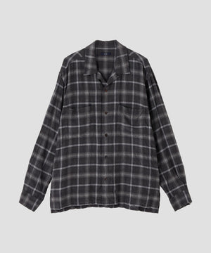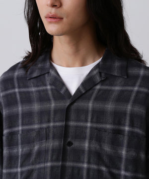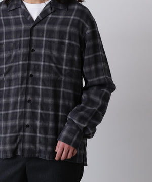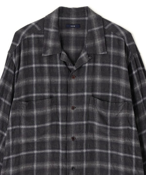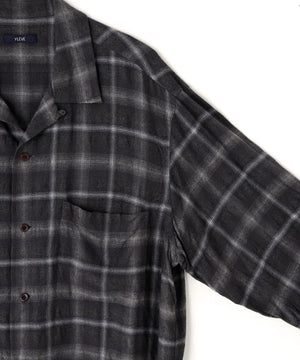 レーヨンとテンセルTOP糸を織り交ぜたオリジナル柄のチェック。微起毛加工を行うことによりヴィンテージ感を出しています。ゆったりとしたオープンカラーシャツです。