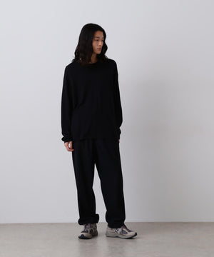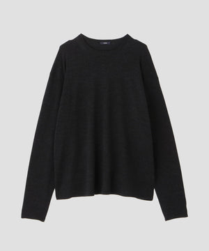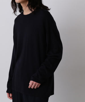 SUPER120'Sウールを使用し、軽さとしなやかな風合いを併せ持った素材です。ベーシックなゆったりしたPOニットはロングスリーブTシャツをモチーフに作りました。袖口をロールアップしたり、裾をインしたりして着ることが出来ます。