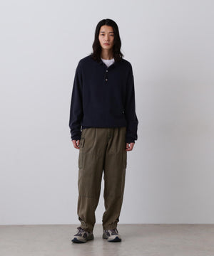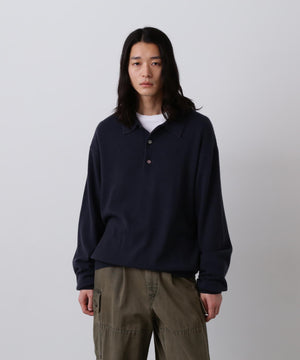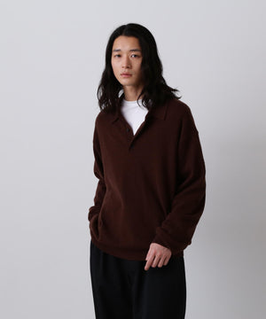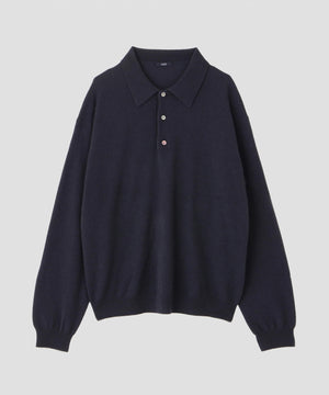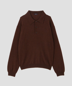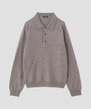 内モンゴルの柔らかな風合いの紡毛カシミヤ糸です。ふんわりとした風合い出しをしています。衿が大きめのクラシックなニットポロです。