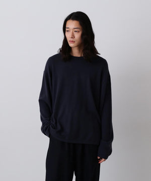 内モンゴルの柔らかな風合いの紡毛カシミヤ糸です。ふんわりとした風合い出しをしています。ロングスリーブTシャツの様に着ることができ、袖をまくって着るのもおすすめです。