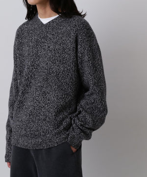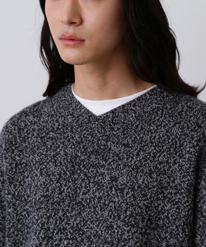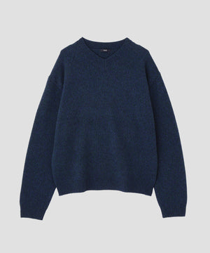 カシミヤブレンドの滑らかで軽やかな質感の捻り杢糸です。浅めのVネックが新鮮なプルオーバーです。