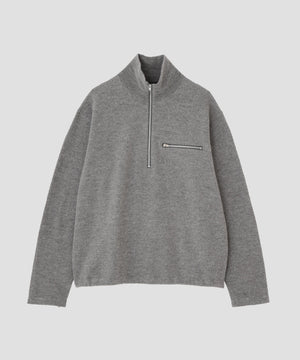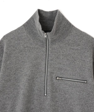 YLÈVE / ULTRAFINE MERINO MILLED WOOL KNIT HALF ZIP PULL OVER