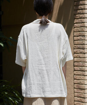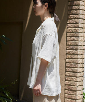ドライなタッチによる清涼感が特徴のリネンとコットンのパナマ生地を使用したシャツです。ベーシックな仕立てで、ややゆったりとしたボックスシルエットのオープンカラーのデザイン。