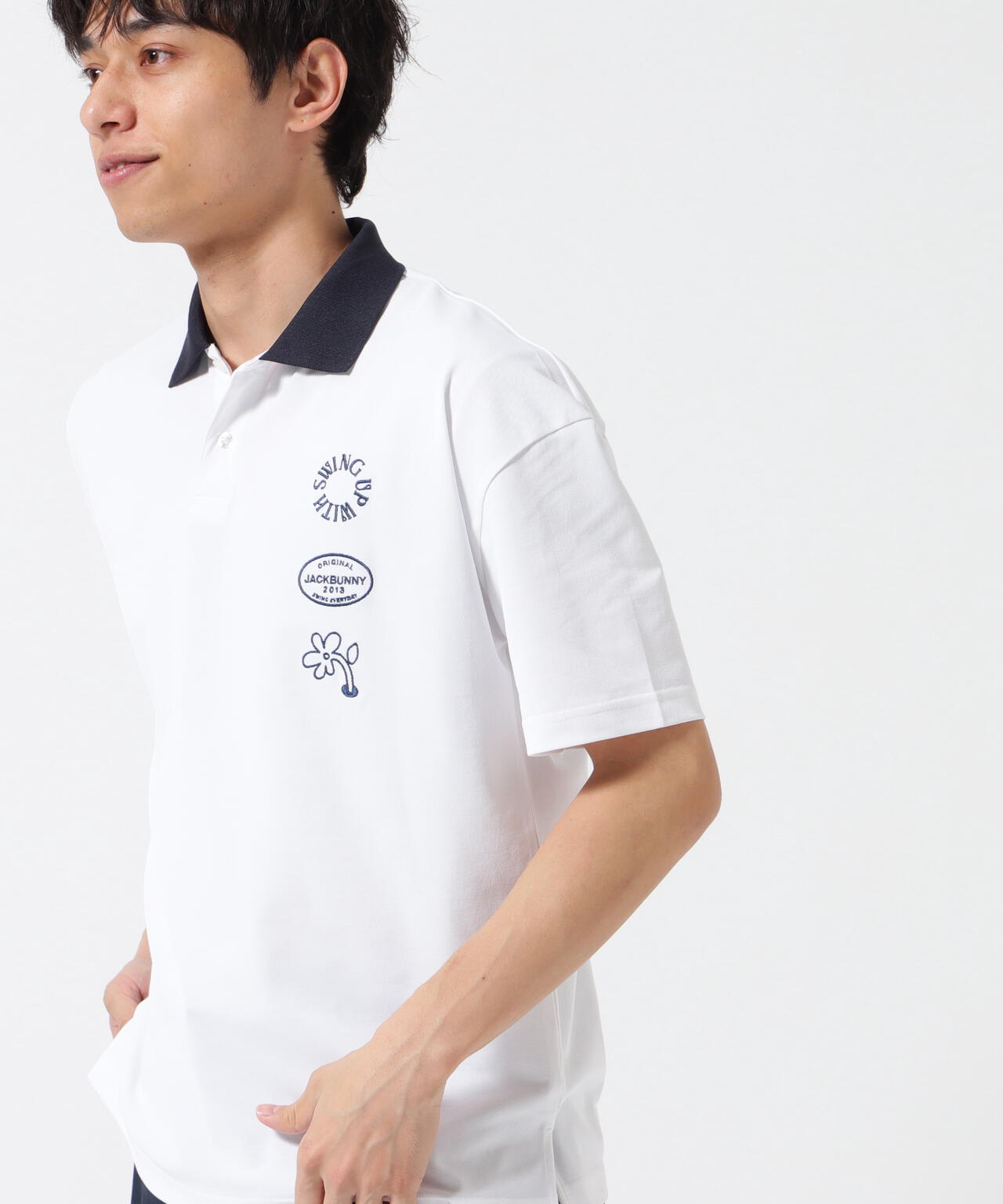 馬具モチーフの躍動感あふれるバックプリントでインパクトを与えた、Dickies PEカノコ半袖ポロシャツ。さらりと着られる肌触りの良さを実感できる、通気性や吸水速乾性に優れたポリエステル生地で作られています。配色で切替したリブ襟や胸元のモチーフがコーディネートのアクセントにもなる、ゴルフからデイリーユースにも重宝する1着です。